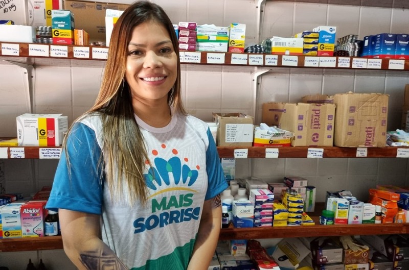 A farmacêutica Ingrid Pantoja é responsável por entregar os remédios aos pacientes