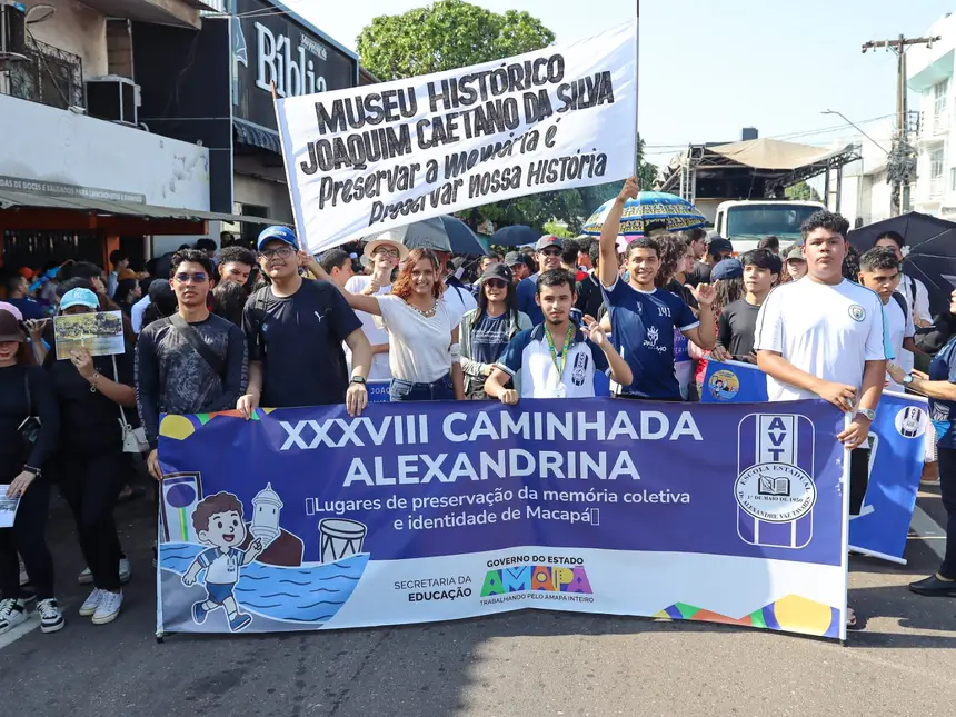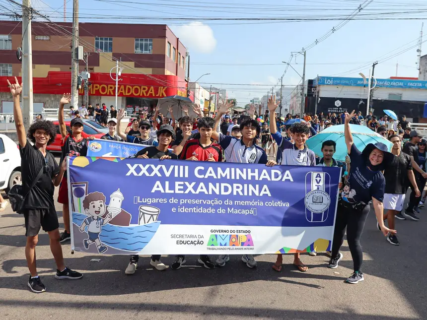 O sábado, 27, foi marcado por tradição, cultura e história na 38ª edição da Caminhada Alexandrina, promovida pela Escola Estadual Dr. Alexandre Vaz Tavares, no bairro do Trem, em Macapá. Criada em 1980 pelo professor de Educação Física Custódio, a atividade reuniu cerca de mil estudantes, professores e familiares em um percurso pelas principais vias do Centro da cidade até a Concha Acústica Araxá, com uma programação voltada à valorização da memória e da identidade cultural do Amapá.