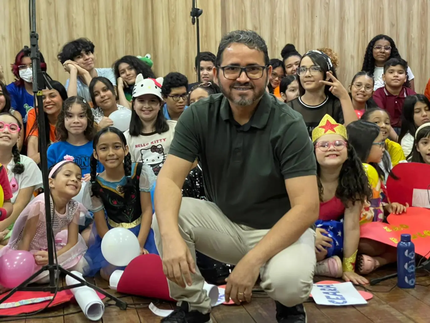 A plateia se emocionou com clássicos do grupo Balão Mágico, que marcaram gerações com canções como Super Fantástico, Meu Balão Azul e Se Namora. A frase da música Sou Feliz, “Até quem tem mais idade, mas tem felicidade no seu coração”, ecoou no auditório e foi vivida com intensidade pelos pais, que, entre sorrisos e lágrimas, voltaram no tempo, revivendo a infância ao lado dos filhos.