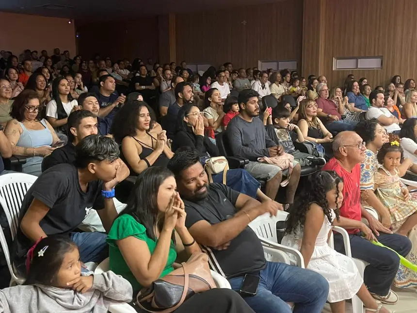 Crianças animadas, pais emocionados e um público envolvido em pura nostalgia. Assim foi o recital “Era uma vez um balão”, do Coral Infantojuvenil Rosana Lobato, realizado nesta quarta-feira, 8, no auditório Oscar Santos, do Centro de Educação Profissional Walkíria Lima, em Macapá.