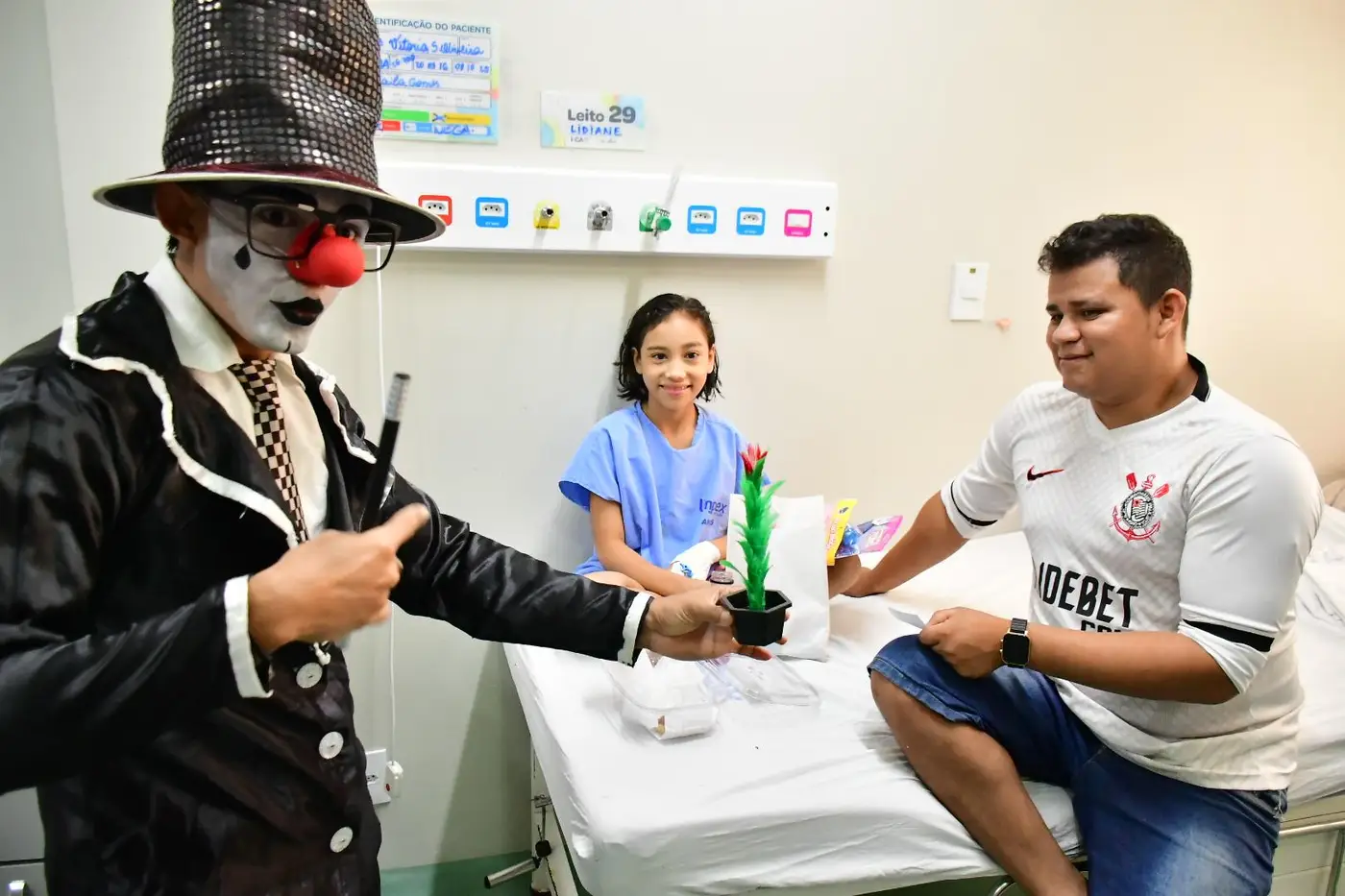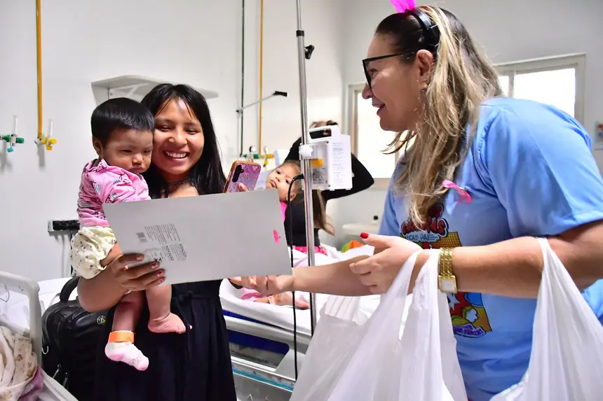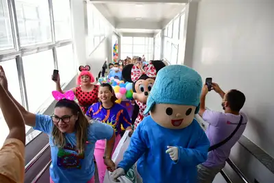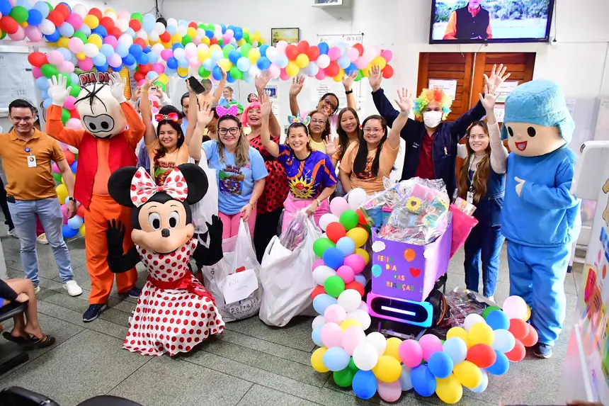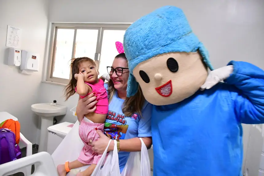 O cortejo foi formado por servidores da saúde e voluntários que percorreram corredores e enfermarias distribuindo brinquedos, kits de higiene infantil, truques de mágica, música e a presença de personagens queridos, como Pocoyo, Minnie e Cebolinha. Para muitas famílias, foi um respiro em meio aos desafios da internação.
