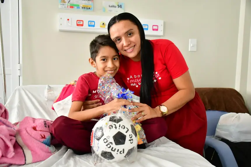 “Meu filho ficou muito feliz. Ele ganhou uma bola e ficou radiante. É um momento que trouxe alegria, esperança e leveza pra ele e pra mim também. Ver o sorriso no rosto do meu filho me encheu de gratidão”, contou emocionada Sabrina Rodrigues, mãe do Cristino, paciente do HCA.