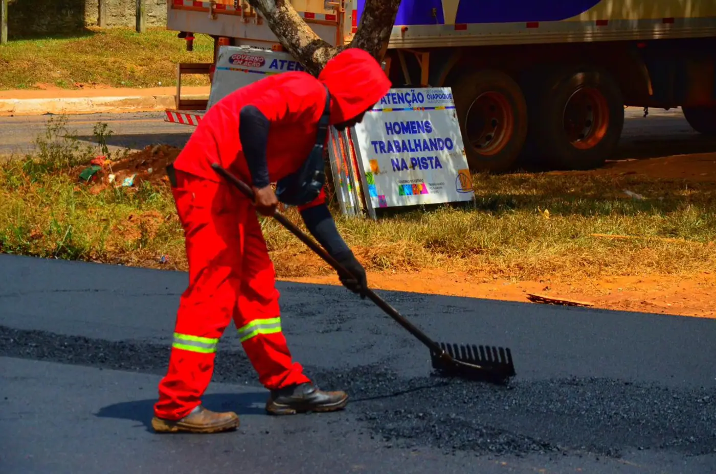 "Eu estava sem trabalho há muito tempo. Quando disseram que o Governo ia contratar pessoas daqui de Oiapoque, não perdi tempo e fui me informar. Foi muito bom quando me chamaram para trabalhar e, ao mesmo tempo, ver nosso município sendo cuidado, com ruas recebendo asfalto novo e mais empregos. Isso tudo é ótimo", comenta Lucas Felipe, que faz parte da equipe responsável pelo recapeamento das vias.