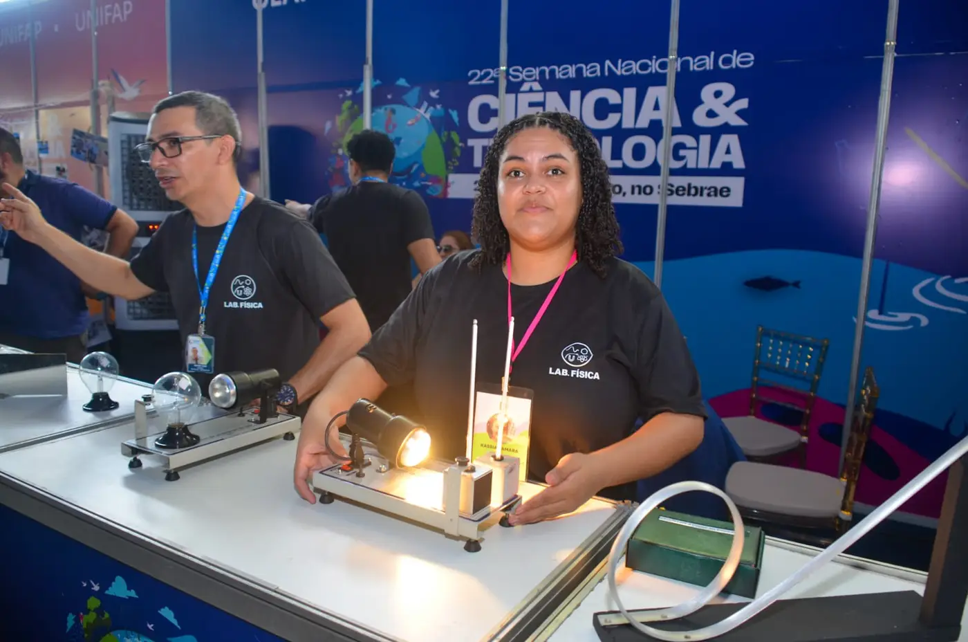 O Iepa levou exposições científicas e fez a entrega do Atlas Geográfico do Amapá, enquanto a Universidade Federal do Amapá (Unifap) apresentou um projeto de alunos do curso de Ciências Ambientais voltado para educação infantil sobre sustentabilidade. Já a Universidade do Estado do Amapá (Ueap) encantou o público com experimentos de física aplicada, como holograma 3D, propagação de calor, associação de espelhos, gerador eletrostático e loop magnético.