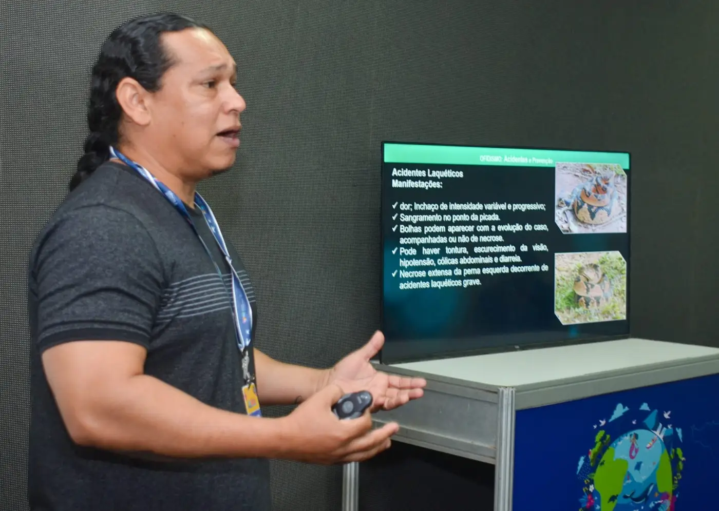 Entre as oficinas, uma das mais procuradas foi a que aborda animais peçonhentos, conduzida pelos pesquisadores Jucivaldo Lima e Janaina Lima, do Instituto de Pesquisas Científicas e Tecnológicas do Amapá (Iepa). Especialista em herpetofauna, grupo que inclui anfíbios e répteis, Janaina destaca a importância da educação e da conscientização sobre o tema.