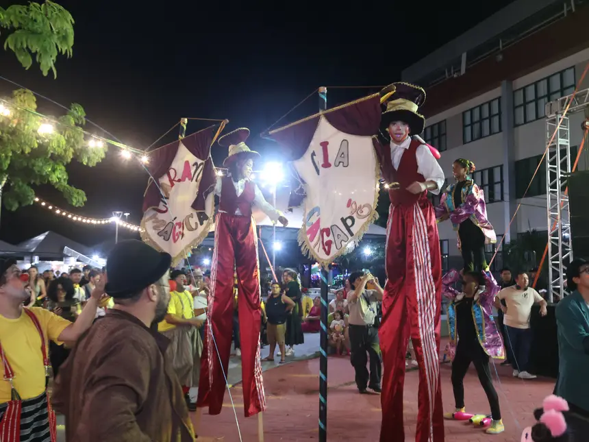 O público foi recebido com a exposição de artes visuais do artista indígena Yermollay Caripoune, com a magia das histórias contadas por Cricilma Ferreira e o espetáculo alegre e envolvente da Cia Cangapé, que animou especialmente os pequenos com apresentações cheias de movimento e humor. O público ainda curtiu o espetáculo “Ancestralidade Tucuju”, do Grupo Amigos da Toada, o cortejo da Charanga Mágica (Oca Produções) e shows de Roni Moraes, Osmar Júnior, Brenda Melo, Judas Sacaca e DJ Larissa Prime.