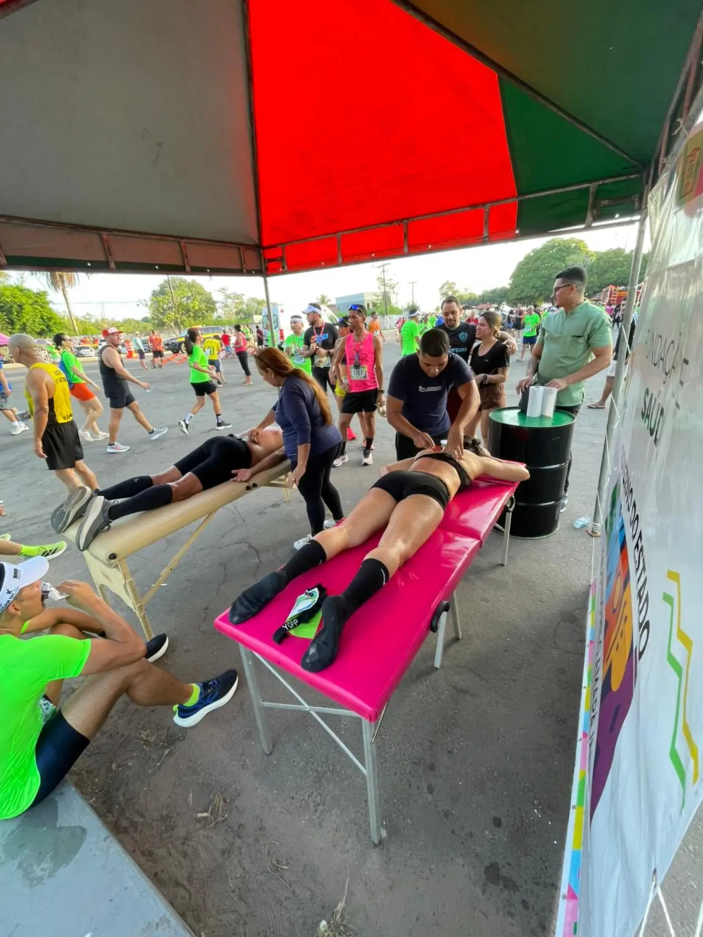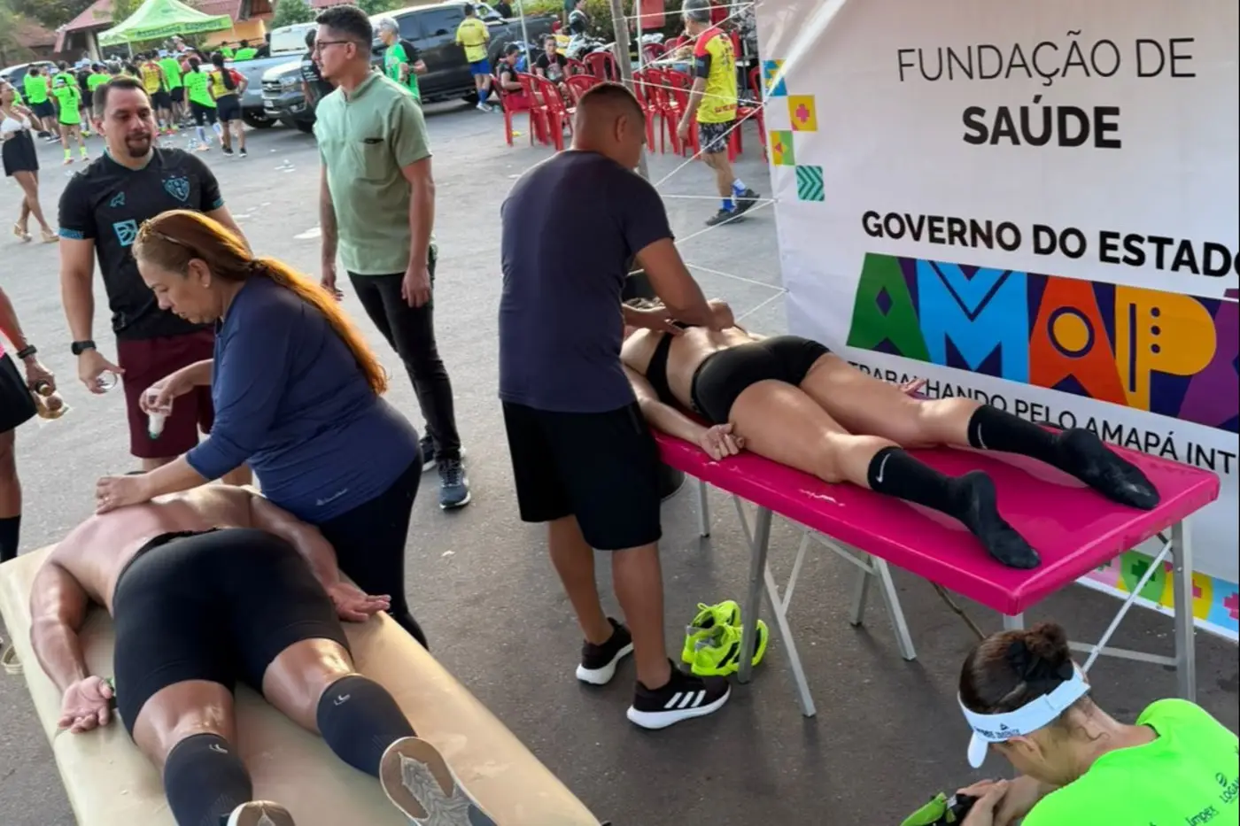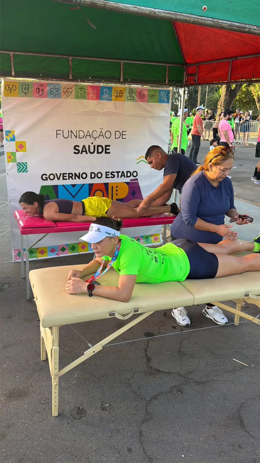 Para garantir o bem-estar dos participantes, a Fundação ofertou um suporte completo. Uma equipe especializada de fisioterapia — formada pela Dra. Gledse, Dr. Marcelo e Dr. Felipe — realizou atendimentos de recovery no pós-prova, ajudando a recuperar músculos cansados e devolver energia aos corredores. No apoio emergencial, o enfermeiro Ailton e o médico Dr. Danton Amanajás estiveram à frente do atendimento na ambulância.