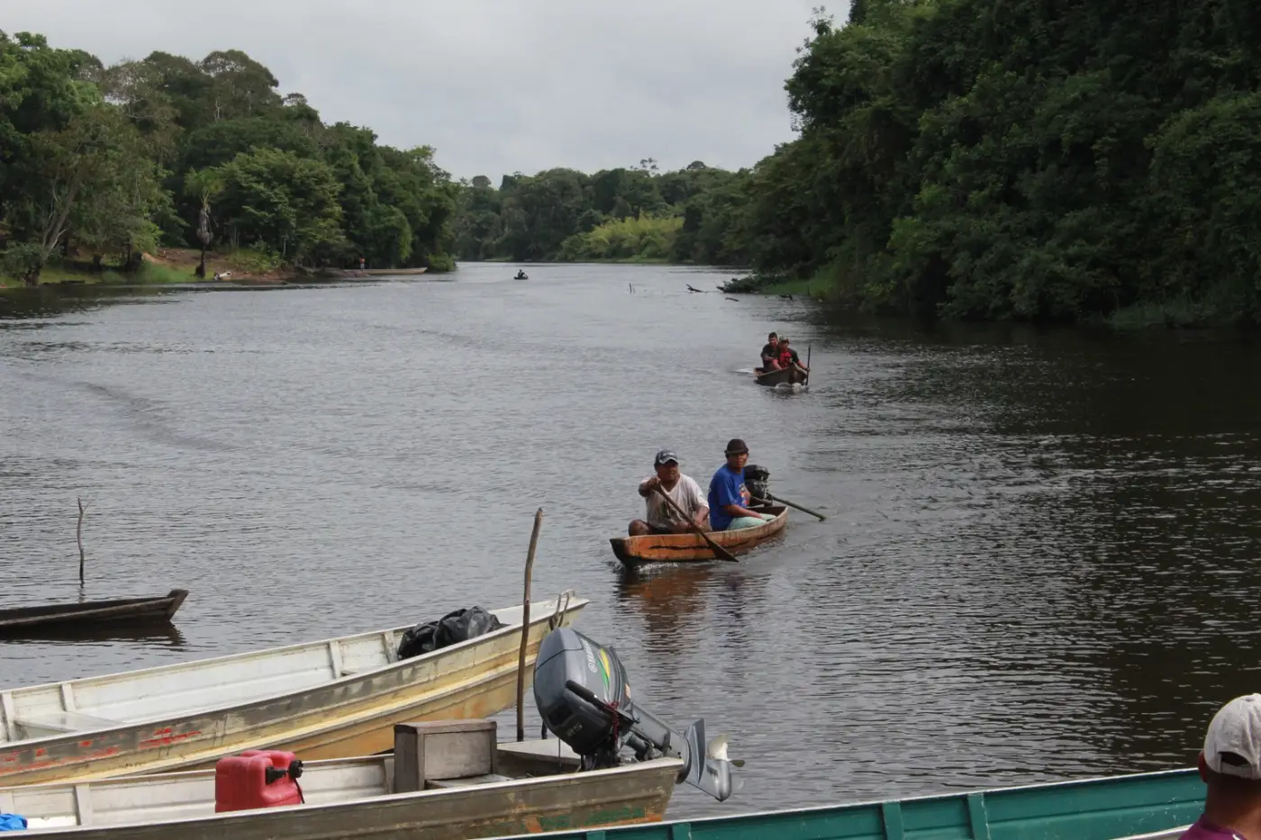 Embarcações das aldeias são usadas para levar alimentos a localidades mais distantes