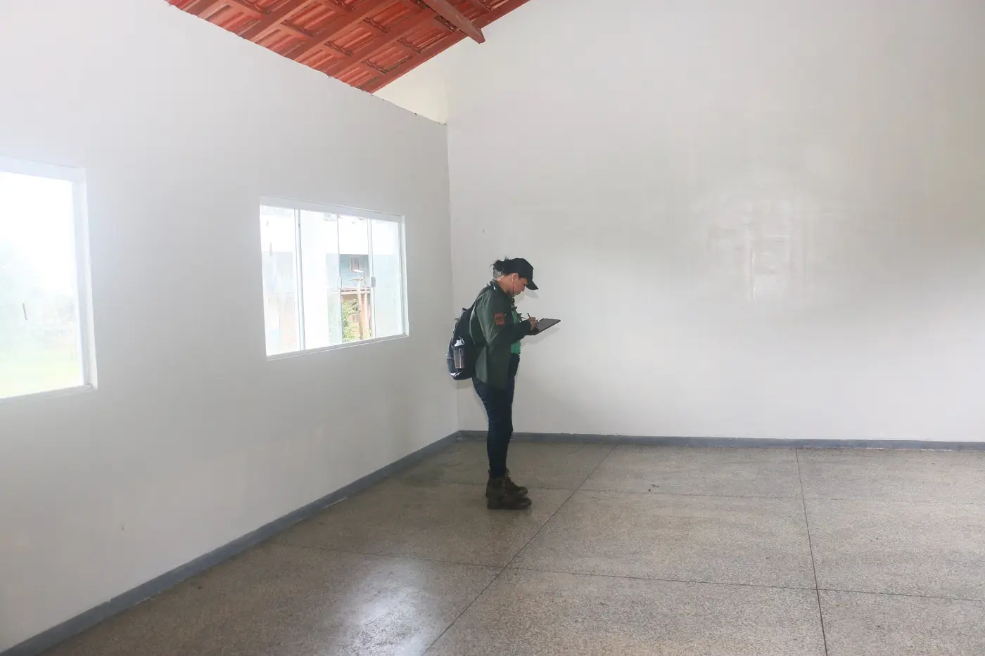 Secretária Sonia Jeanjacque vistoriando as obras da escola que será entregue para a população indígena