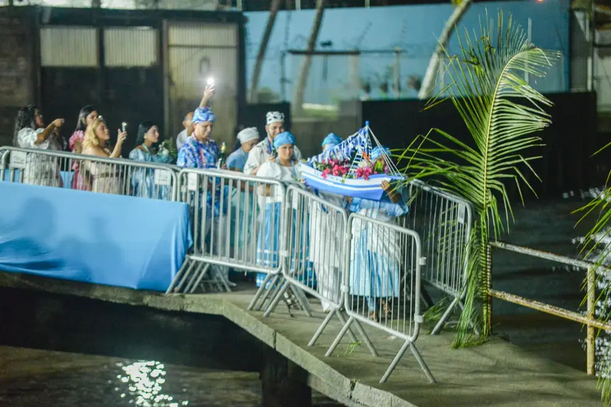 Membros de 75 terreiros de Umbanda e Candomblé se reuniram às margens do Rio Amazonas para entoar cânticos e danças. O tradicional ritual de oferendas priorizou o uso de materiais biodegradáveis, com flores brancas, perfumes e frutas.