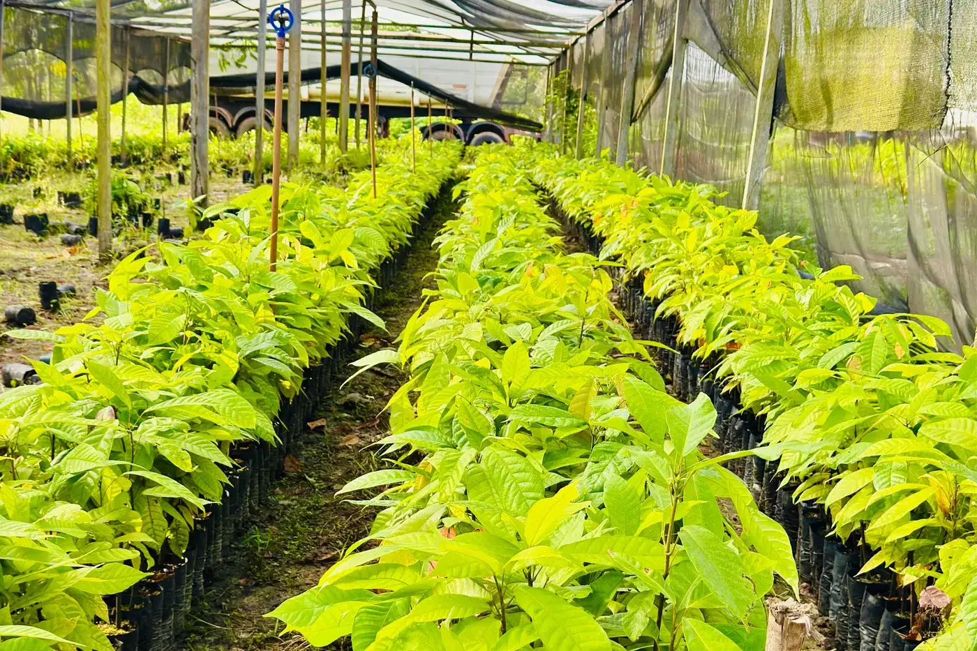 Em um viveiro, mudas de cacau representam o avanço do programa Amapá Cacau, uma iniciativa do Governo do Estado