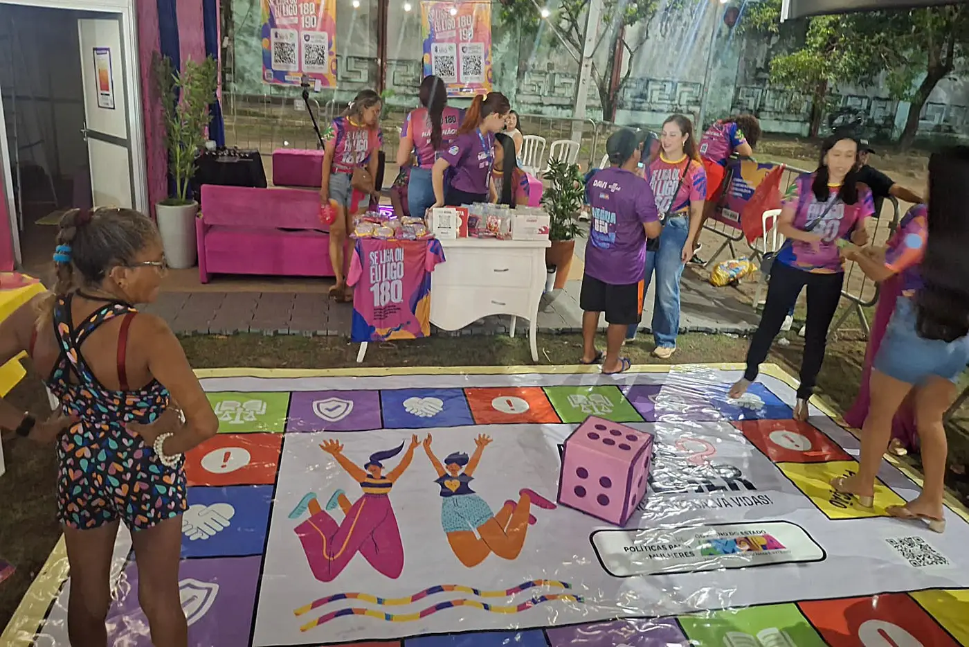 Durante os desfiles das escolas de samba, o Governo do Amapá preparou um espaço totalmente dedicado à proteção, ao acolhimento e à informação para o público feminino. Instalada nos arredores do sambódromo, a "Tenda Lilás" integra as ações de combate à importunação sexual e oferece desde atendimento emergencial até espaços de lazer e cuidados para mães e crianças.