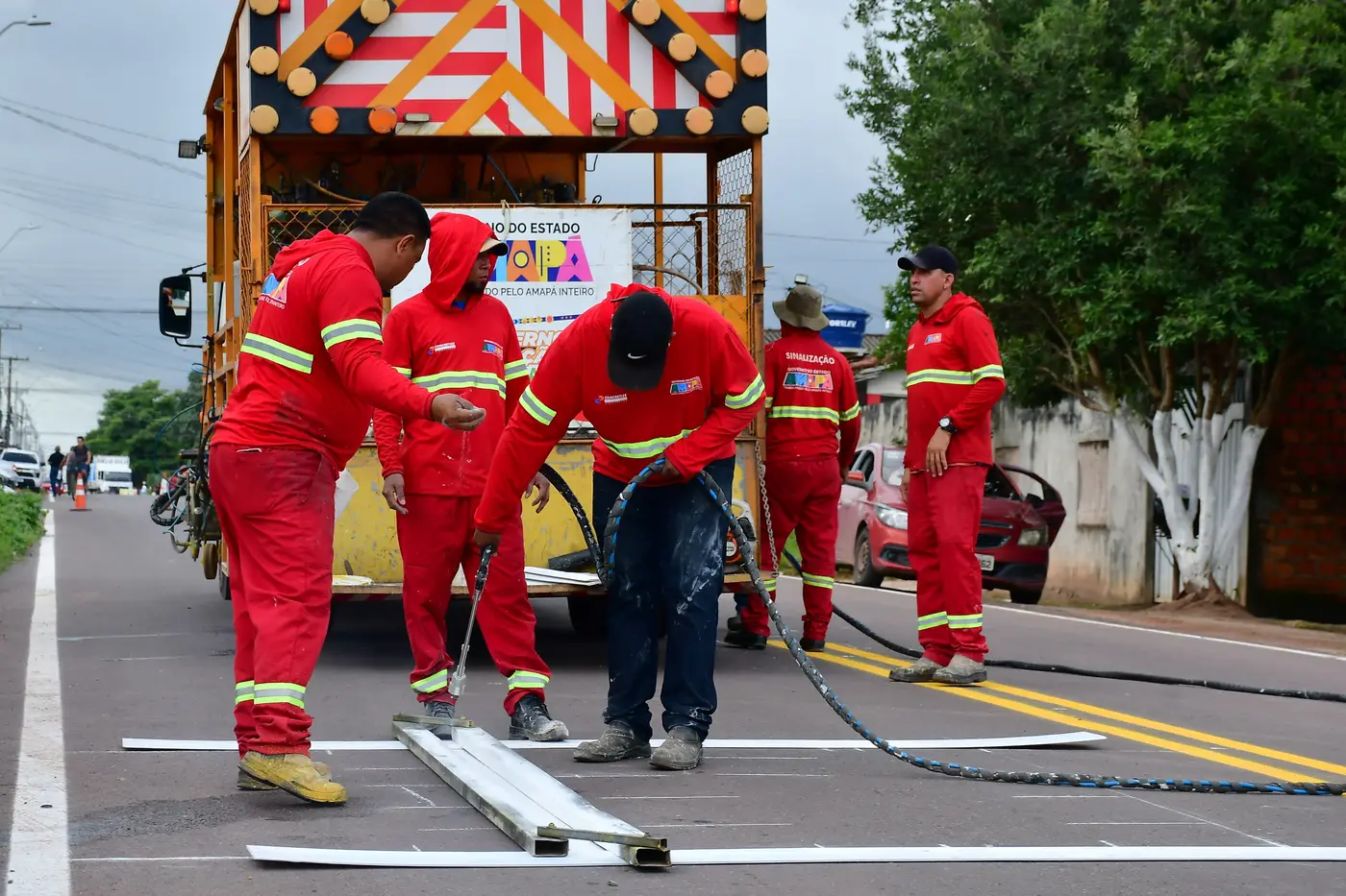 “As ruas do bairro Novo Horizonte estão ficando melhores. Fizemos a pavimentação e agora iniciamos a etapa de sinalização para maior segurança de quem trafega por aqui. Já são mais de 300 quilômetros de novas vias em todo o Amapá, tudo feito com o objetivo de melhorar a vida das pessoas”, afirmou Clécio Luís, ao acompanhar o trabalho na Rua Alceu Paulo Ramos.