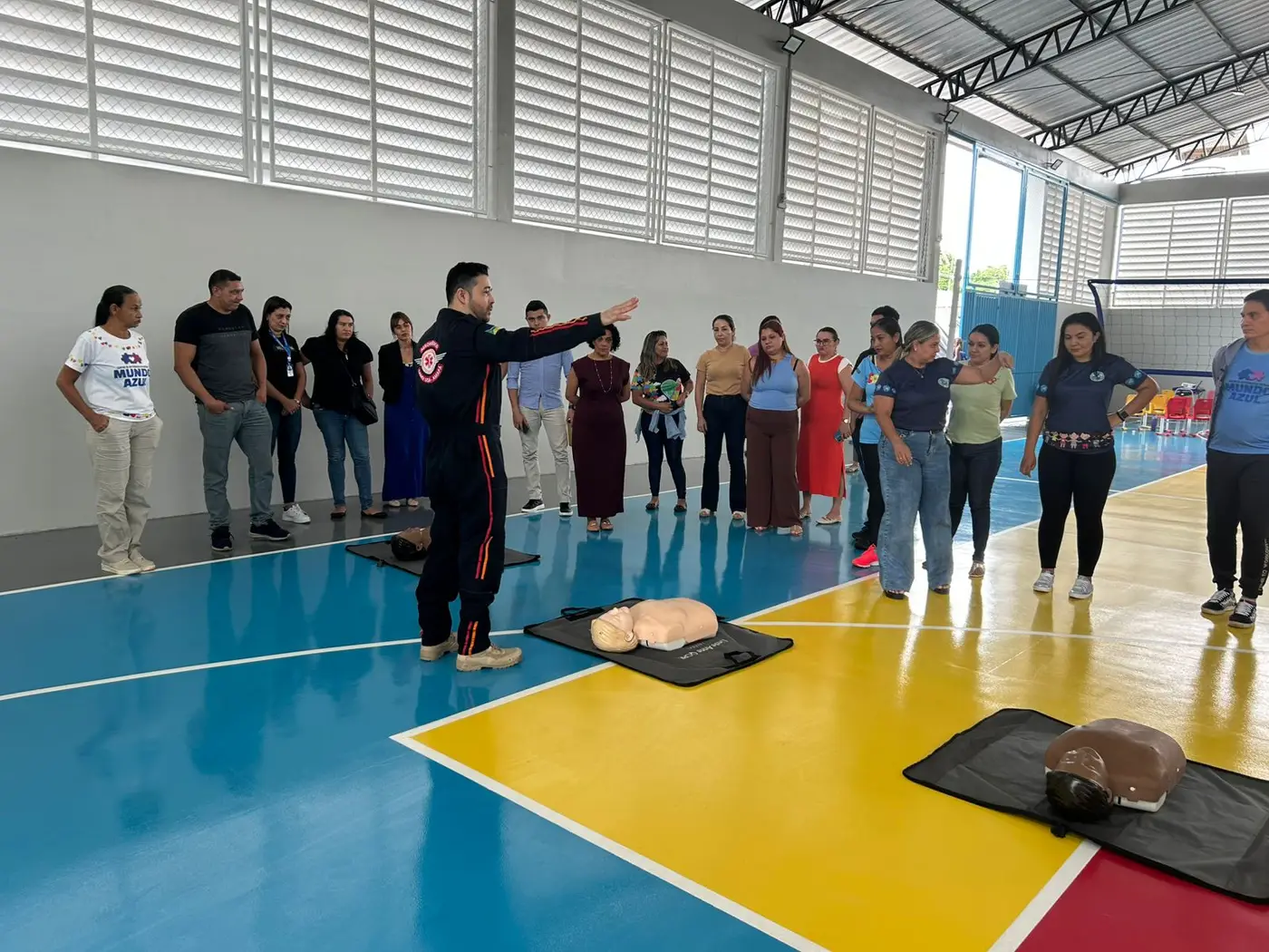 Durante a atividade, os participantes aprenderam procedimentos essenciais. O objetivo é garantir que os profissionais estejam preparados para agir com rapidez e eficiência até a chegada de equipes especializadas.