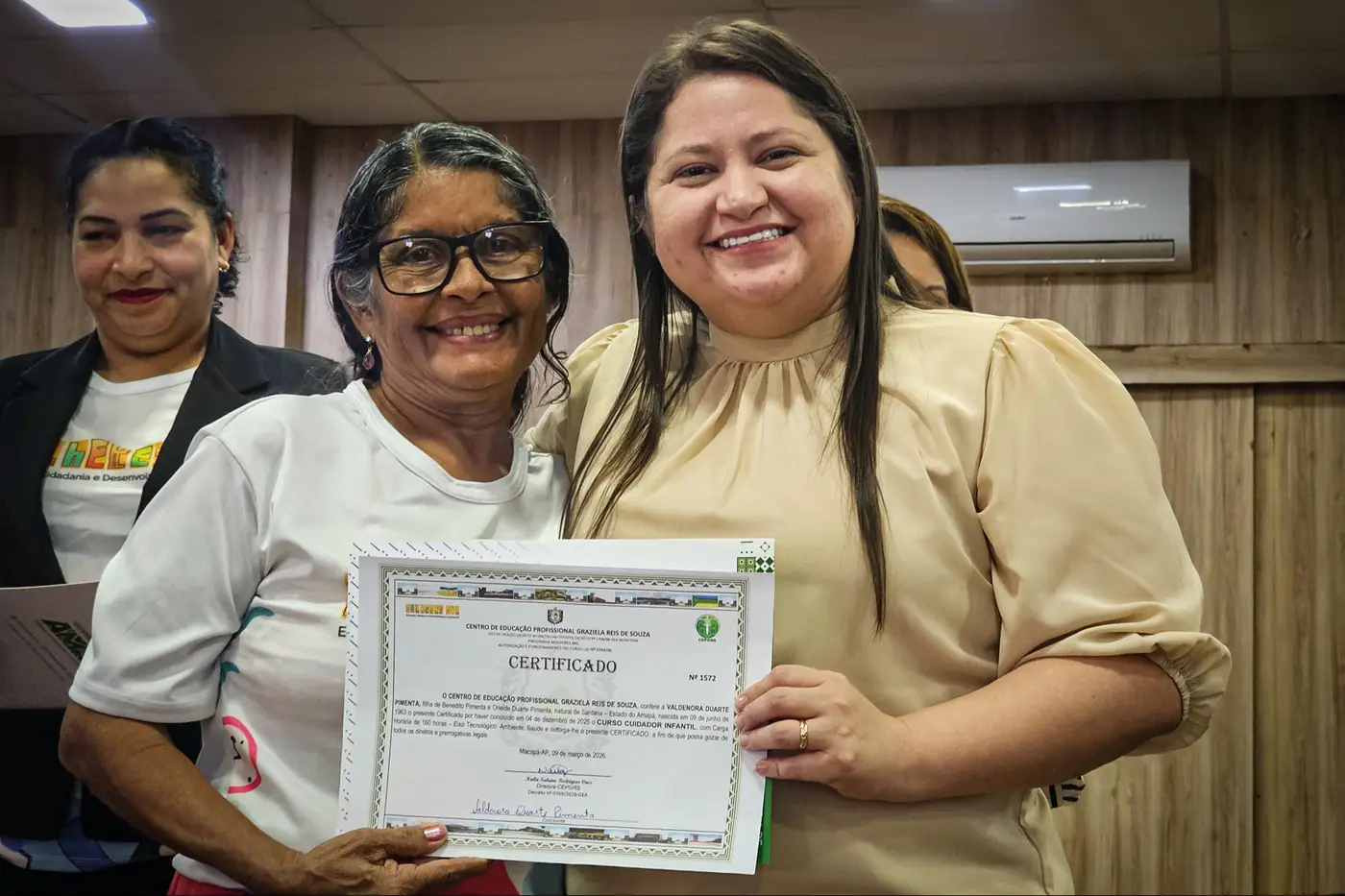 A solenidade reuniu concluintes de Macapá, Oiapoque, Santana, Mazagão, Pedra Branca do Amapari e Vitória do Jari, além de autoridades estaduais, equipes técnicas da educação profissional e supervisores de cursos que atuam nos centros de formação da rede estadual. Durante a programação, também houve apresentação musical em homenagem às formandas, exibição de vídeo institucional e entrega simbólica dos certificados por representantes dos cursos.