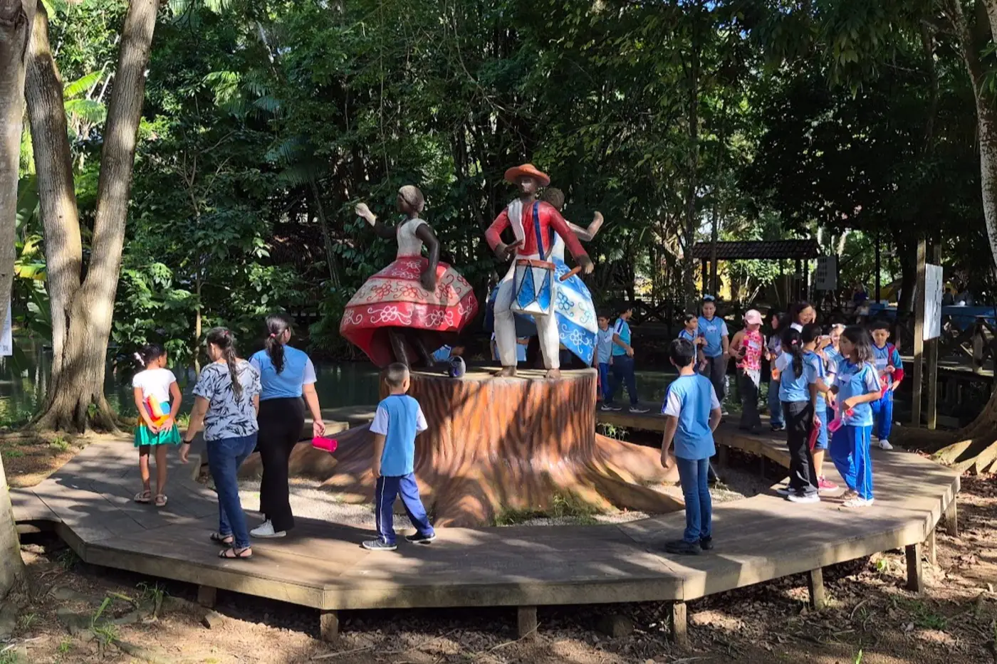 "Trouxemos as crianças para uma aula prática, para que observem a natureza viva. Muitos ainda não conheciam o espaço, e a alegria deles ao ver os animais e o barco Regatão é gratificante", pontuou.