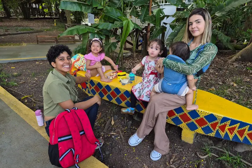 O Museu Sacaca é um ponto de encontro para todas as gerações. A advogada Yasmim Rodrigues Moura e a bióloga Amanda Lima de Oliveira aproveitaram a semana para um piquenique com os filhos.