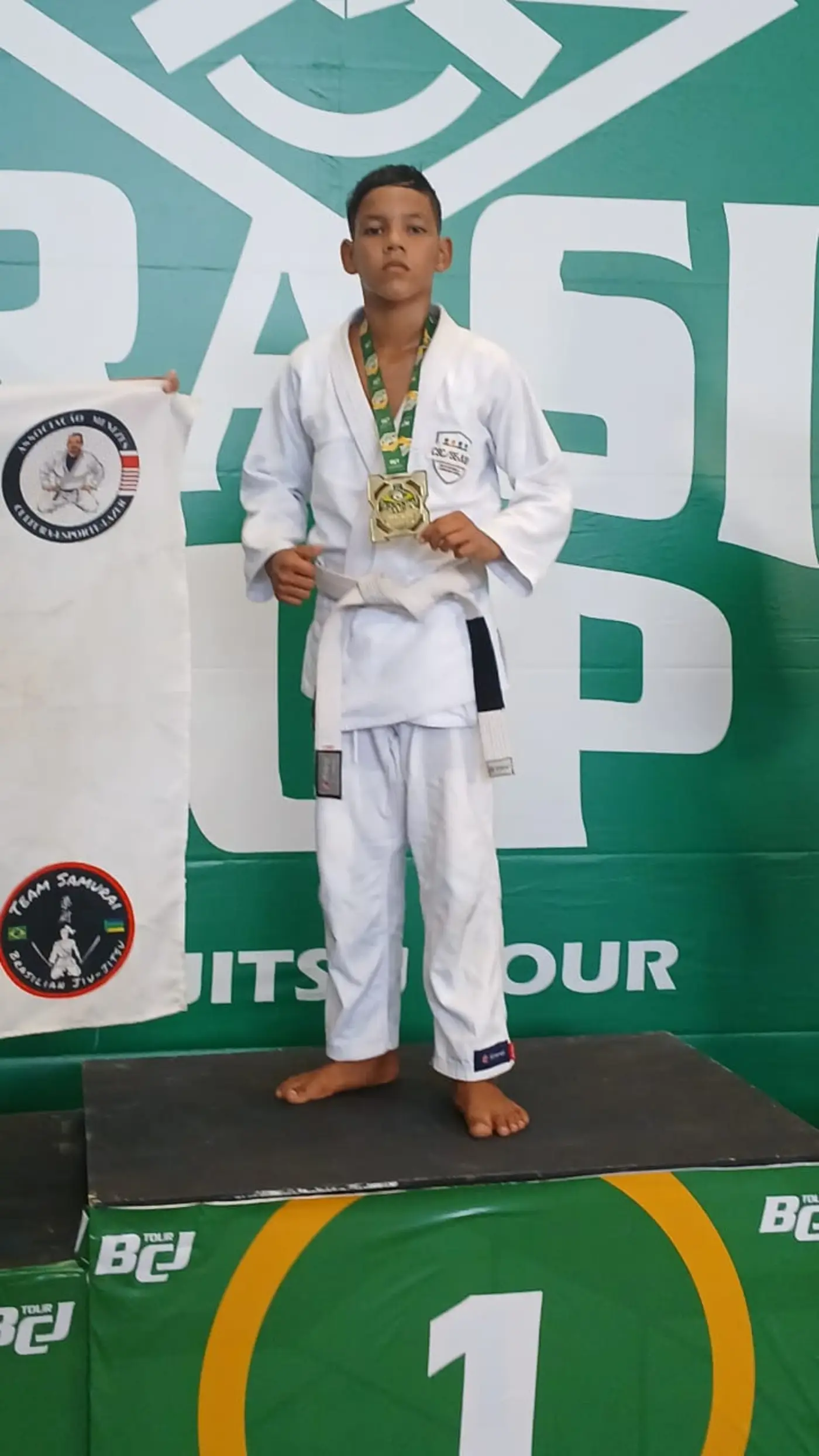 Integrante do Tatame da Cidadania, Edicleuson Senna, de 12 anos, conquistou a medalha no Brasil Cup de Jiu-Jitsu e recebeu novos incentivos para seguir no esporte.