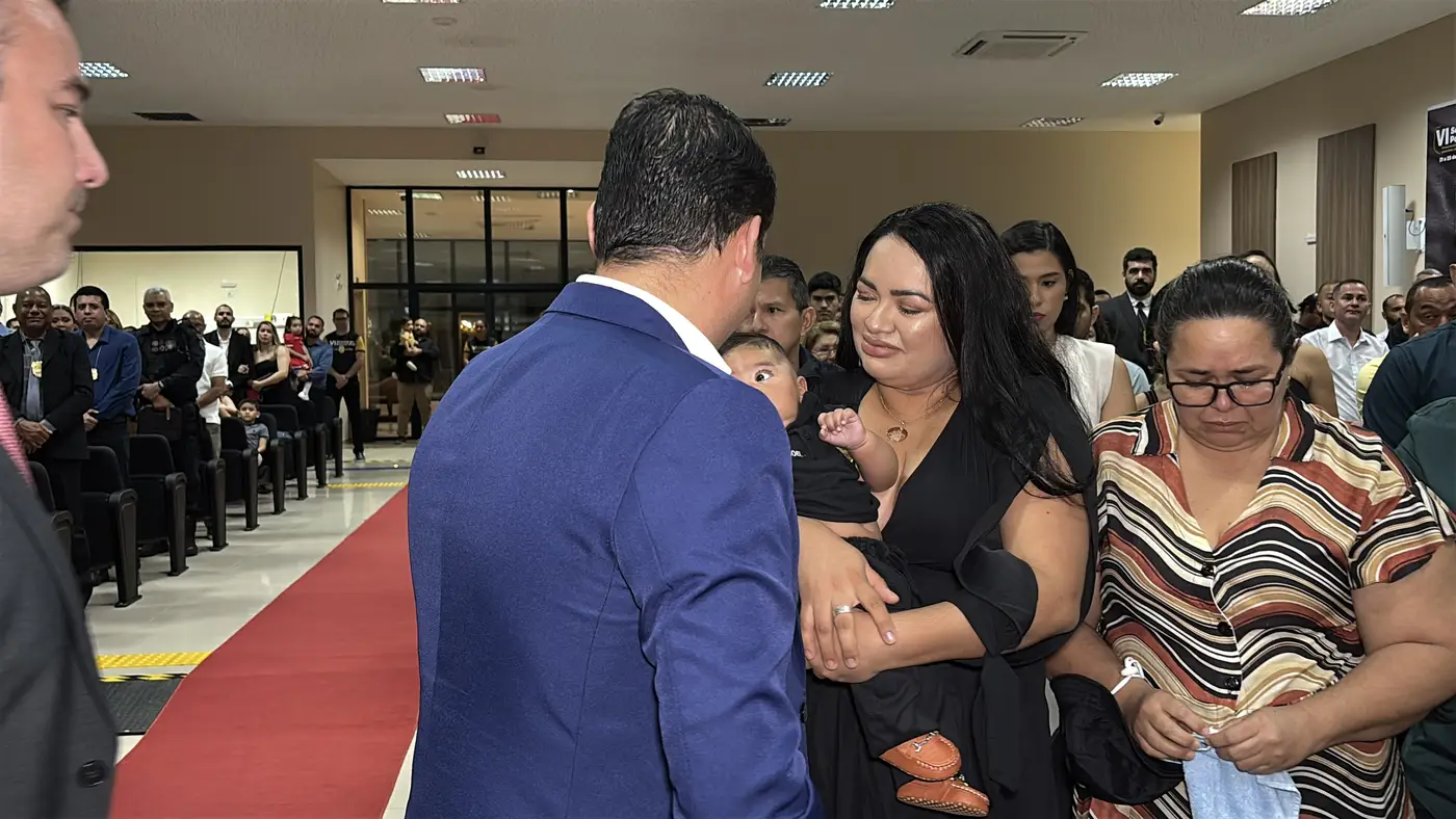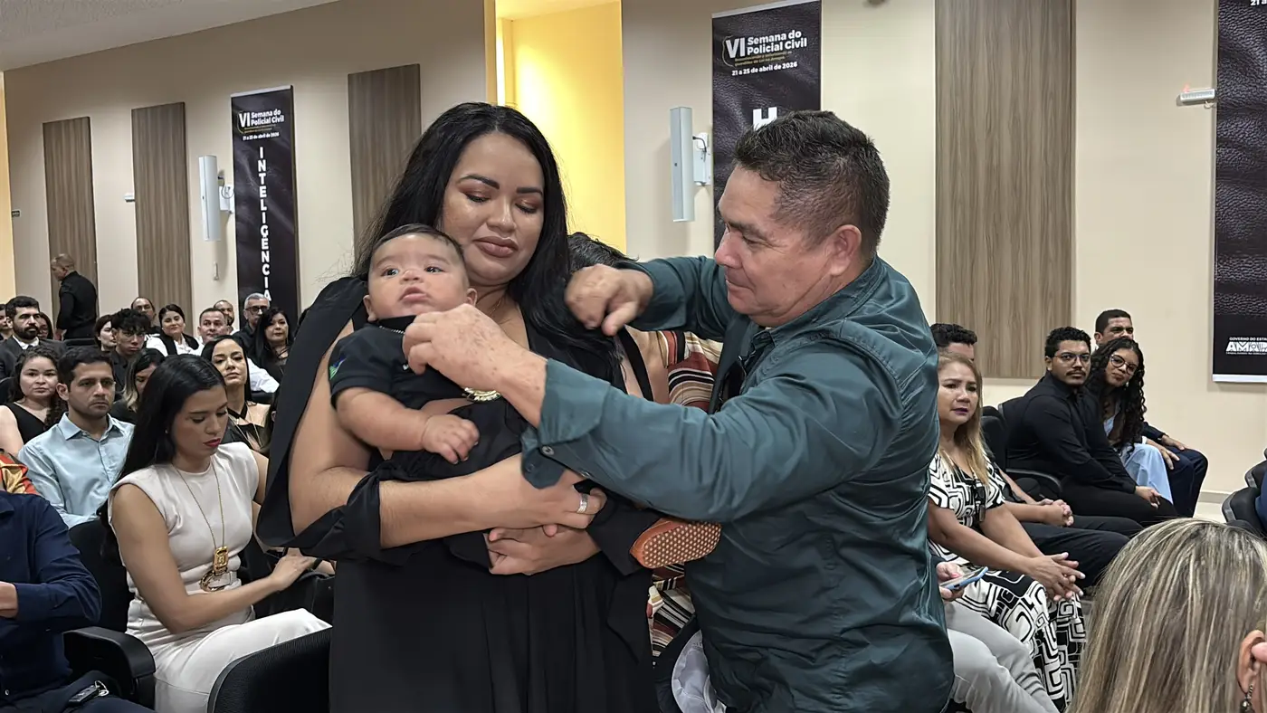 No colo de Ana Maria, o pequeno Mayson Emanuel, de apenas três meses de idade, é a imagem da vida que floresceu em meio à saudade. Durante a abertura oficial da VI Semana do Policial Civil, na última quarta-feira, 22, familiares do policial Mayson Viana de Freitas, morto aos 38 anos em 2025, receberam uma homenagem póstuma em celebração à atuação do agente na Segurança Pública do Amapá.