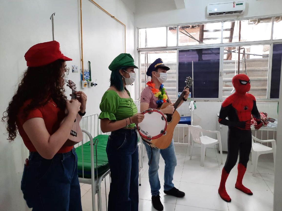Grupo musical e super-herói alegraram o dia das crianças no HCA/PAI