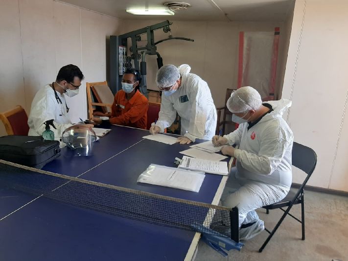 Testes rápido e RT-PCR foram realizados na tripulação.