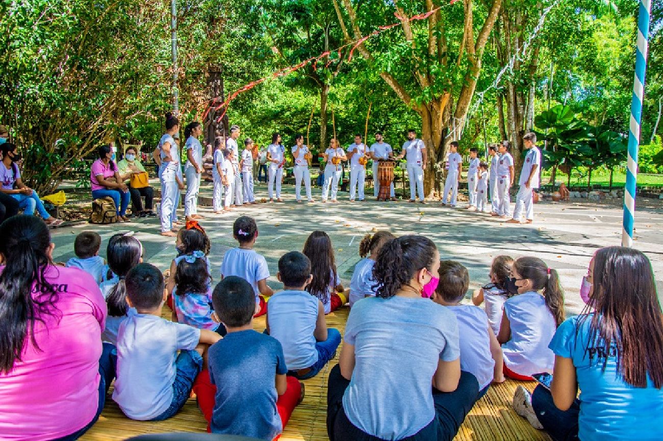 Os pequenos também conheceram mais sobre o surgimento da capoeira como símbolo e identidade dessa cultura, por meio de uma linguagem voltada ao público infantil. Eles, ainda, passearam no barco Regatão.