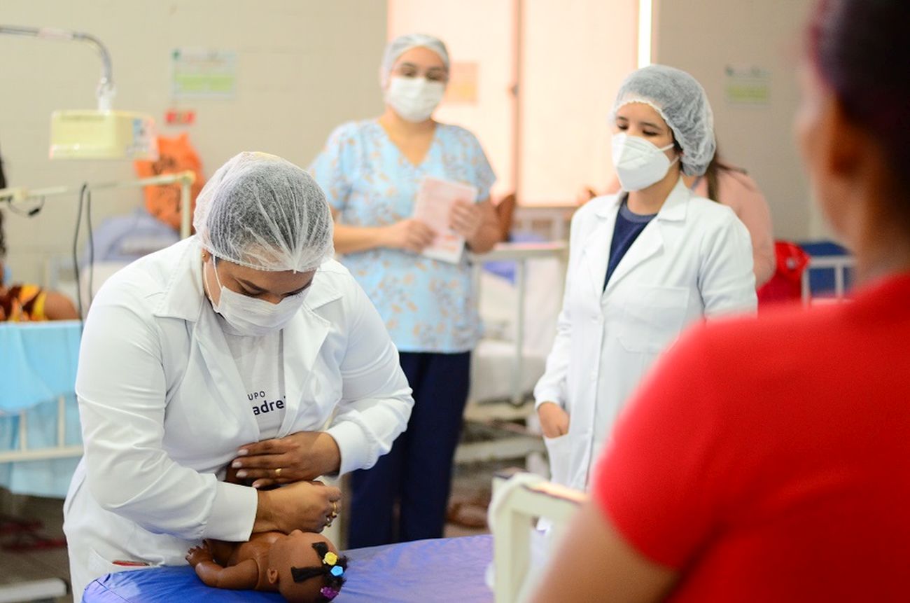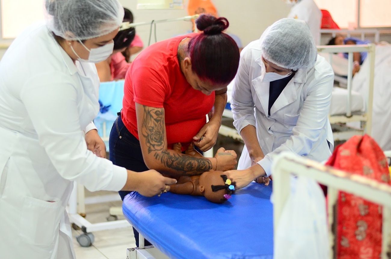 A maternidade contou com o apoio da professora Carla Alves, da Escola Madre Tereza, que ensina a técnica para estudantes da instituição. Ela repassou os ensinamentos para mães e acompanhantes, com o suporte da equipe de enfermagem da Mãe Luzia.