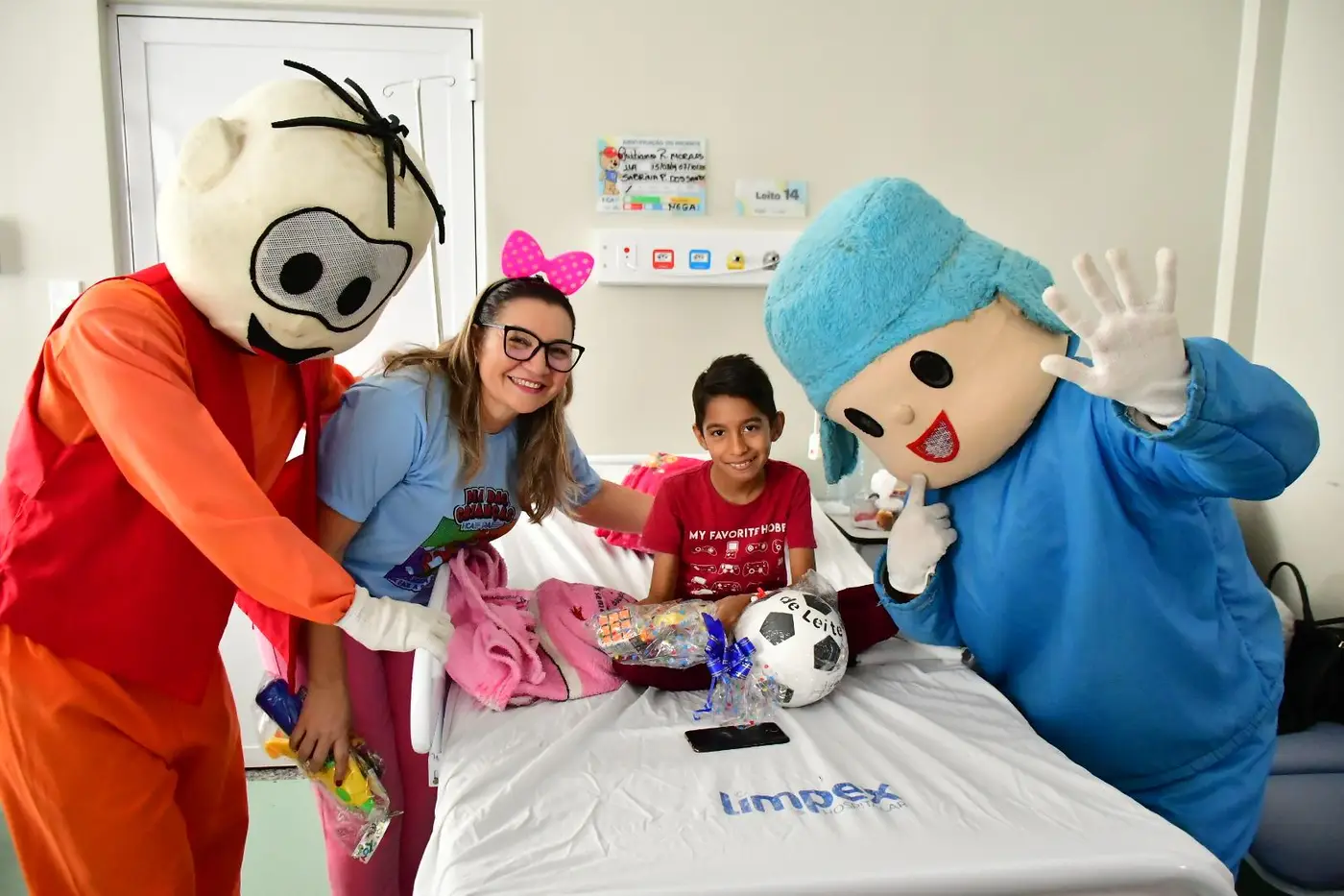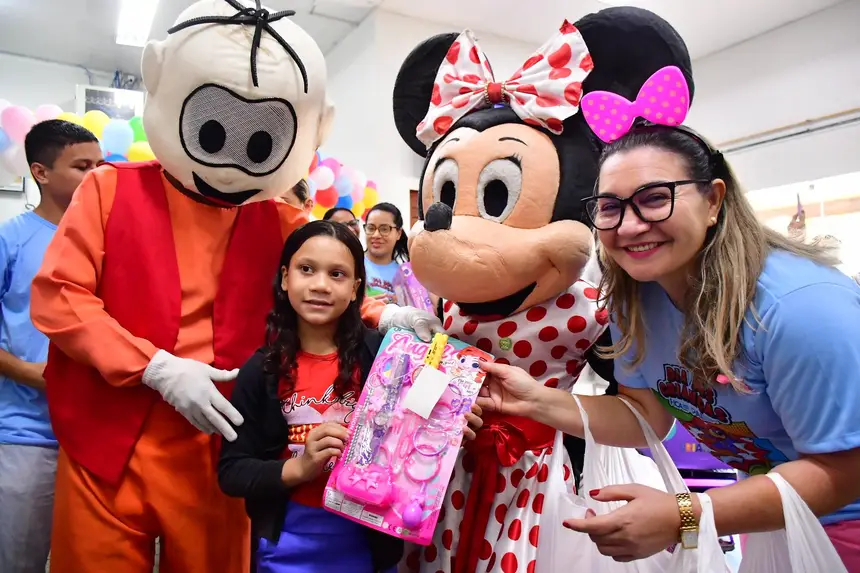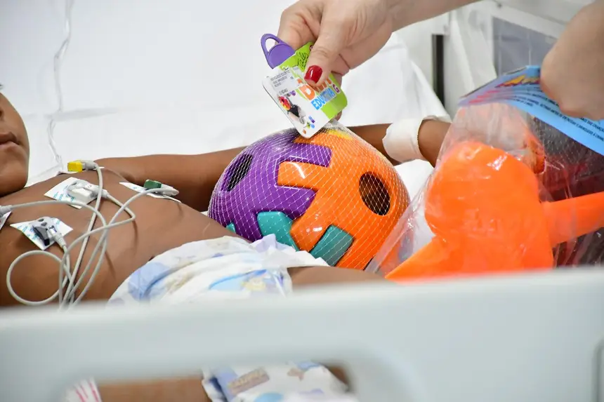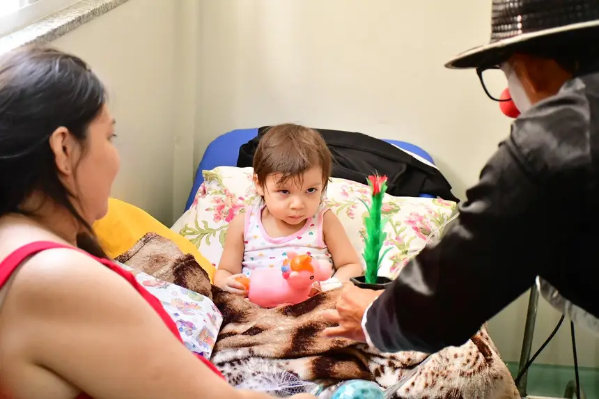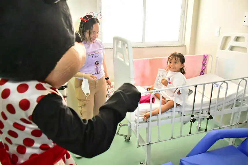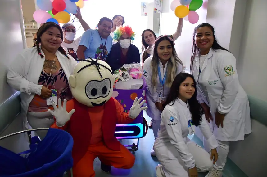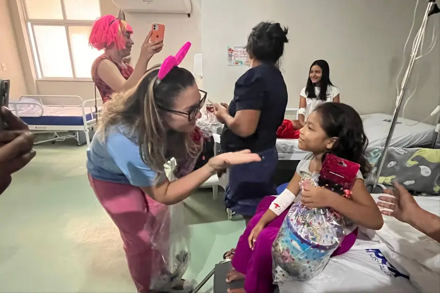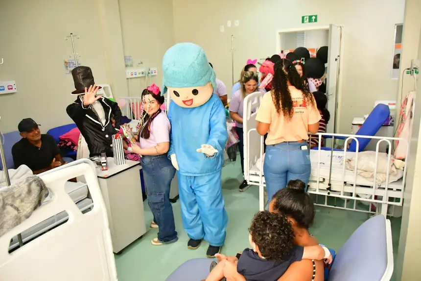 O cortejo foi formado por servidores da saúde e voluntários que percorreram corredores e enfermarias distribuindo brinquedos, kits de higiene infantil, truques de mágica, música e a presença de personagens queridos, como Pocoyo, Minnie e Cebolinha. Para muitas famílias, foi um respiro em meio aos desafios da internação.