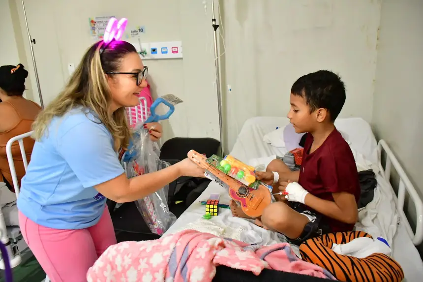 O Dia das Crianças foi de pura alegria para pacientes, pais e profissionais do Hospital da Criança e do Adolescente (HCA) e do Pronto Atendimento Infantil (PAI). É que uma iniciativa do Governo do Amapá quebrou a rotina hospitalar, dando lugar à festa e à imaginação com o tradicional ‘Trem da Alegria’.
