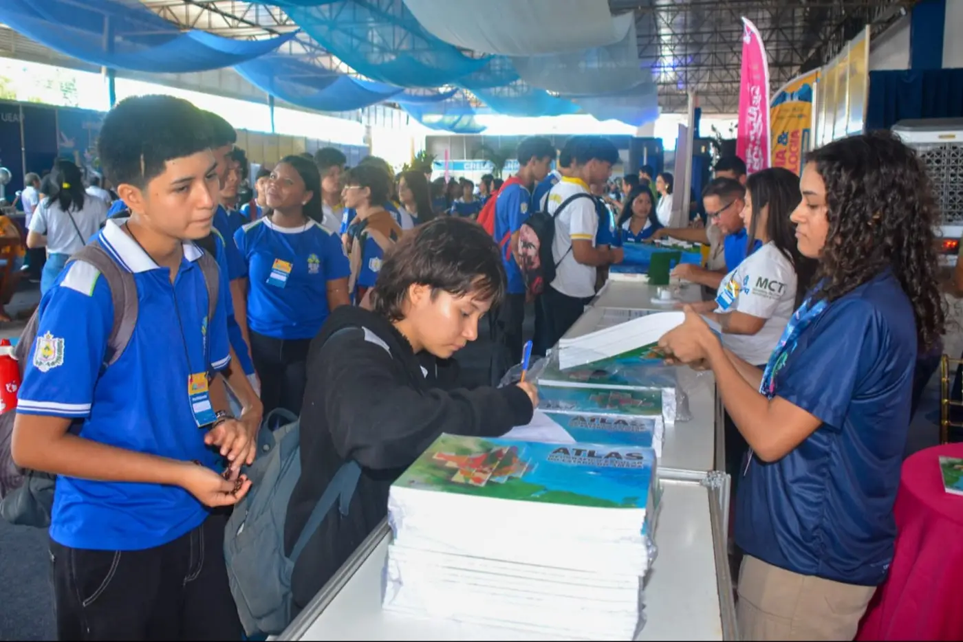 O Iepa levou exposições científicas e fez a entrega do Atlas Geográfico do Amapá, enquanto a Universidade Federal do Amapá (Unifap) apresentou um projeto de alunos do curso de Ciências Ambientais voltado para educação infantil sobre sustentabilidade. Já a Universidade do Estado do Amapá (Ueap) encantou o público com experimentos de física aplicada, como holograma 3D, propagação de calor, associação de espelhos, gerador eletrostático e loop magnético.