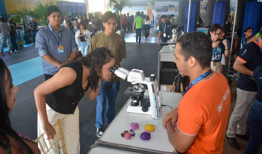 Além das oficinas, os visitantes exploraram diversos estandes interativos que aproximam o público das inovações tecnológicas e dos projetos de pesquisa desenvolvidos no Amapá. O Sesi/Senai apresentou demonstrações com óculos de realidade virtual, robótica e microscópios, despertando o interesse dos jovens pelo mundo da tecnologia.