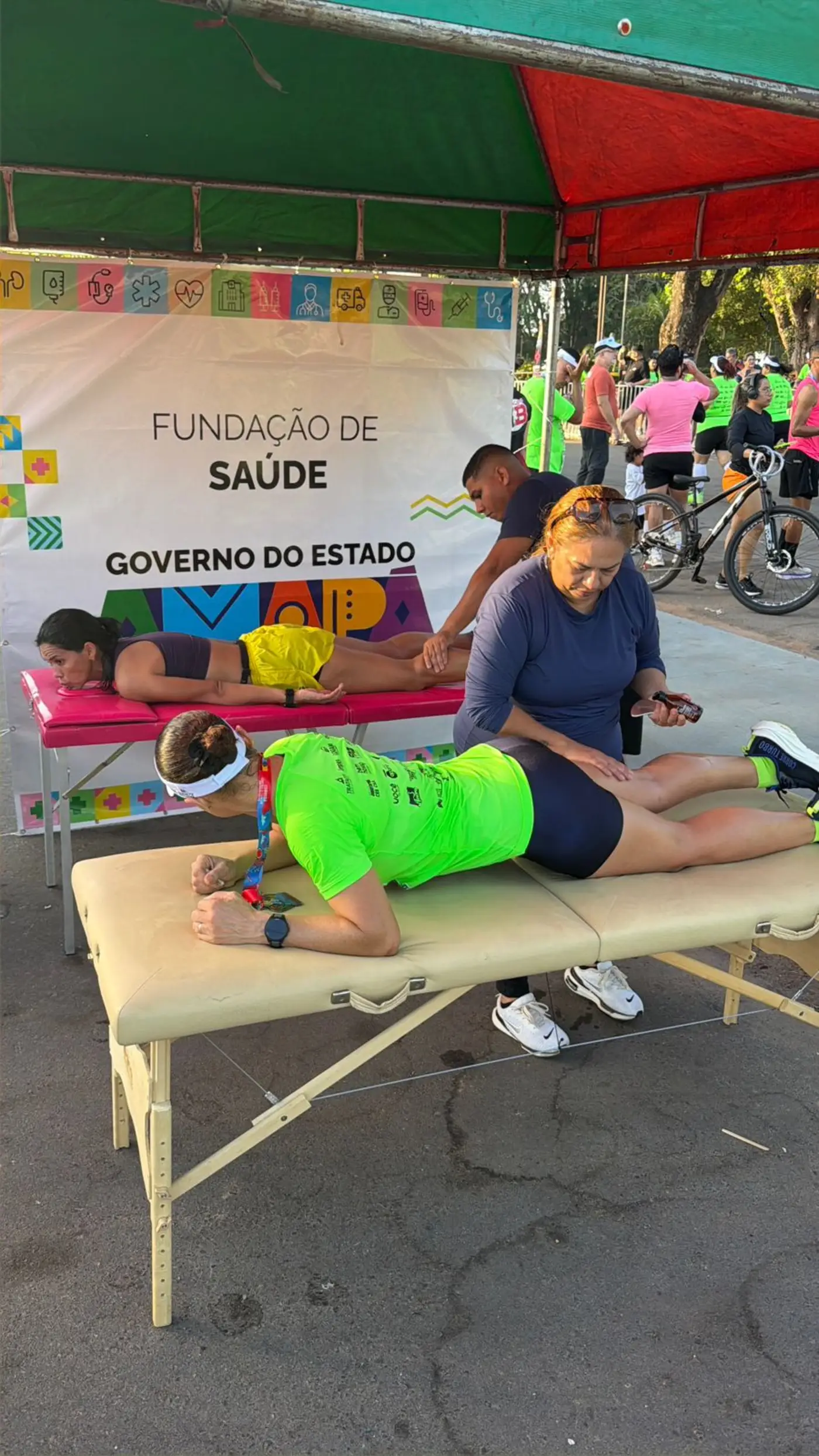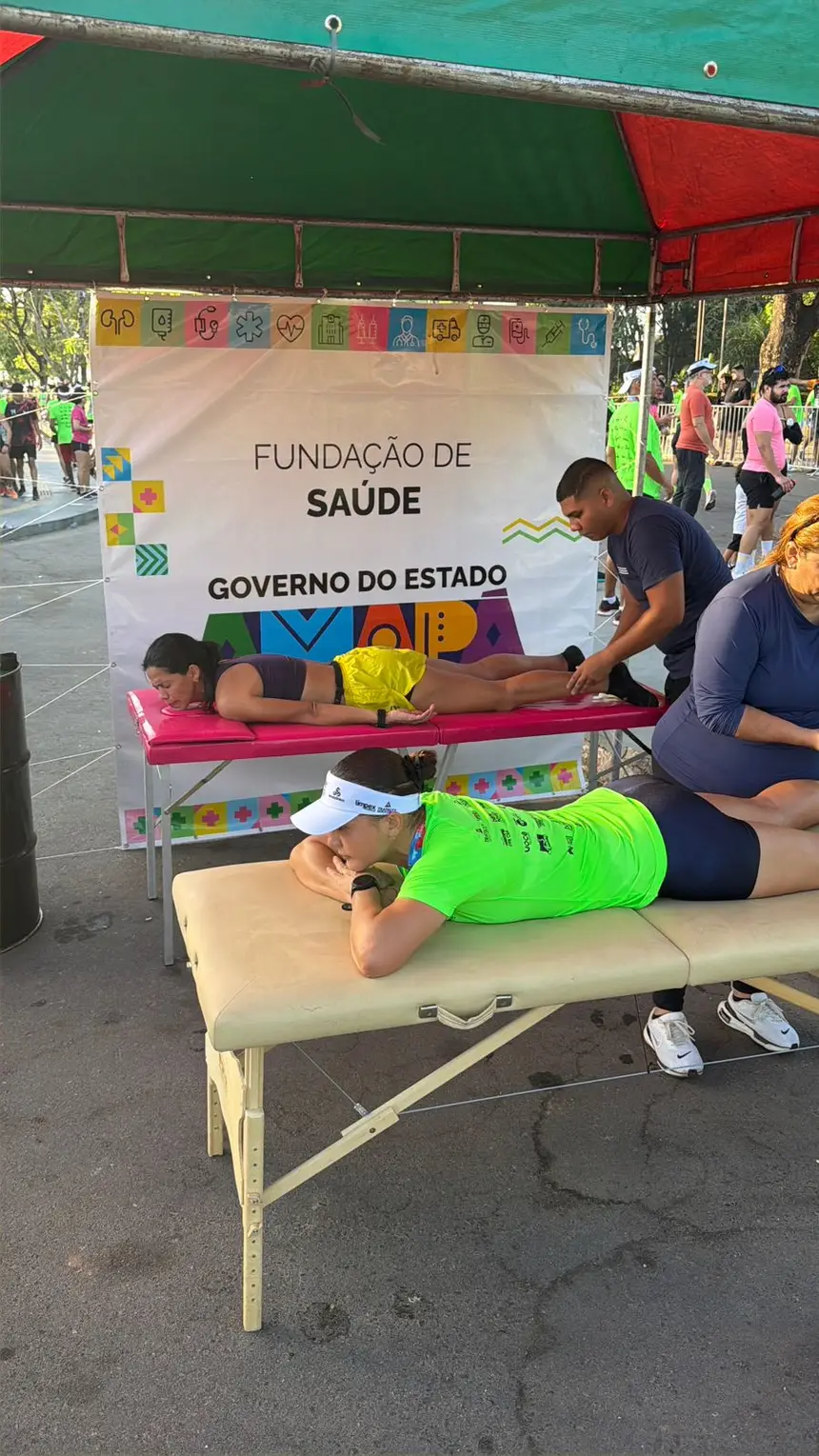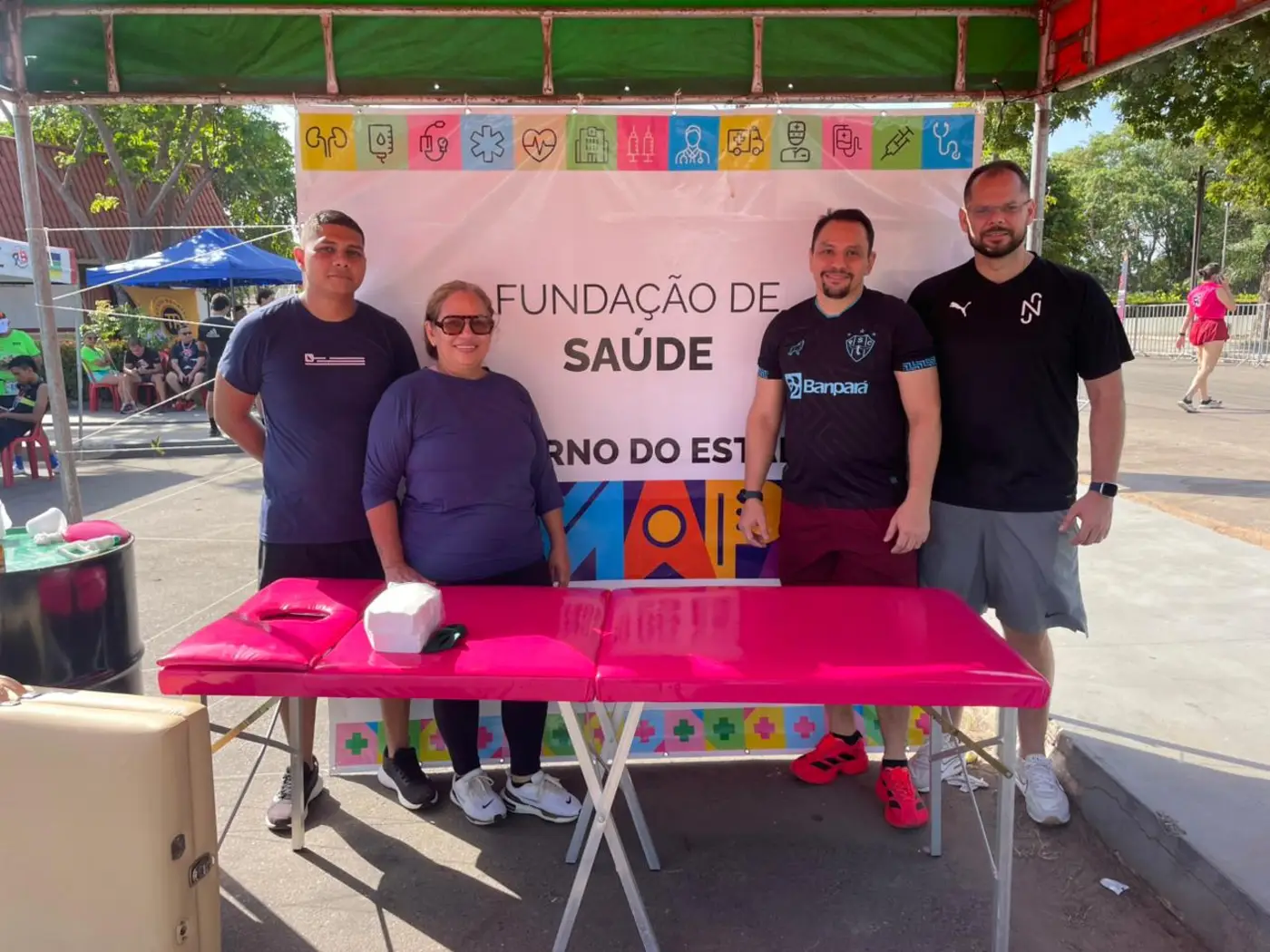 Para garantir o bem-estar dos participantes, a Fundação ofertou um suporte completo. Uma equipe especializada de fisioterapia — formada pela Dra. Gledse, Dr. Marcelo e Dr. Felipe — realizou atendimentos de recovery no pós-prova, ajudando a recuperar músculos cansados e devolver energia aos corredores. No apoio emergencial, o enfermeiro Ailton e o médico Dr. Danton Amanajás estiveram à frente do atendimento na ambulância.