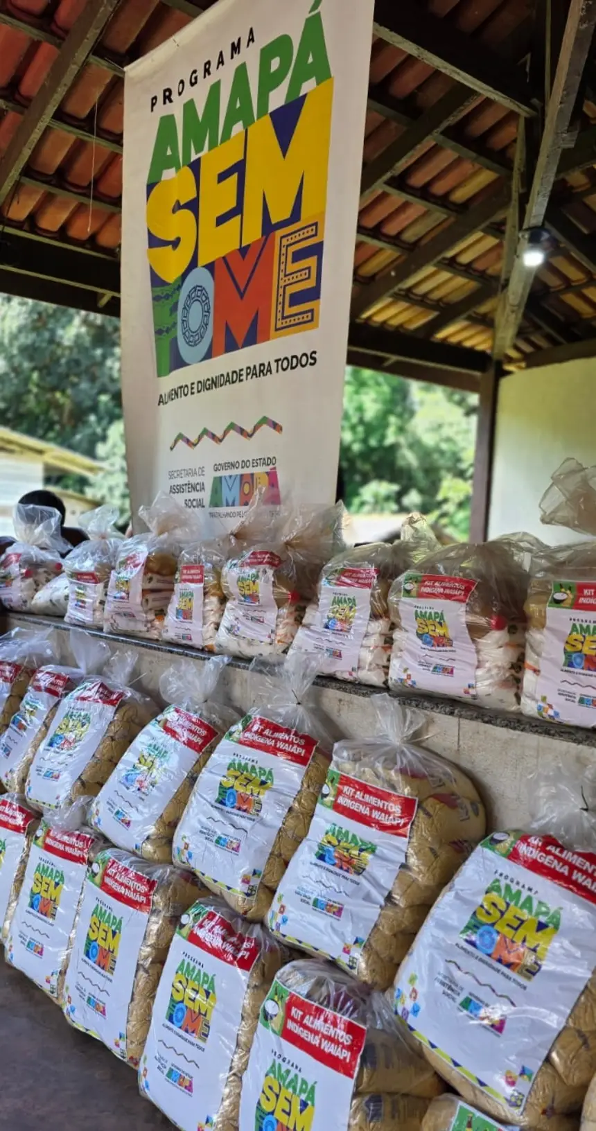 O Governo do Amapá realizou, no sábado, 15, a entregas de 411 kits de alimentos ao povo Wajãpi, na comunidade Aramirã, em Pedra Branca do Amapari. O repasse faz parte do Termo de Compromisso, firmado entre o Estado e o Conselho dos Caciques Wajãpi, no mês de junho. A iniciativa integra um conjunto de medidas adotadas por instituições públicas para reduzir os impactos da crise fitossanitária causada pela vassoura-de-bruxa da mandioca que atingiu produtores no estado.