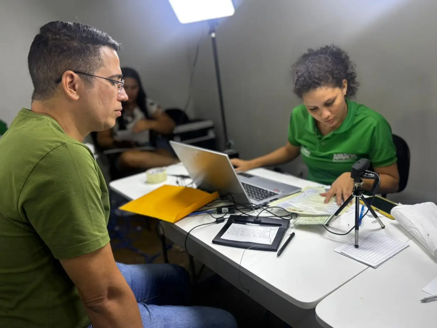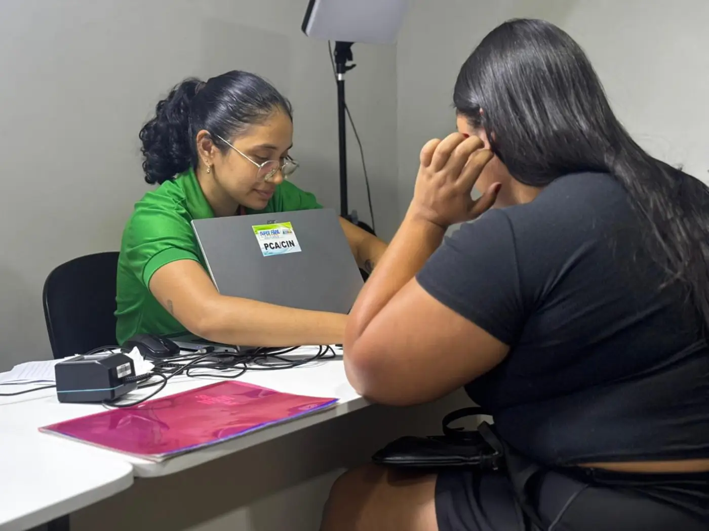 Experiência da moradora Dorian Garcia reflete a importância da presença do Estado nesses territórios. Ela levou o filho, Fredson Vinícius, para emitir o Cordão de Girassol e destacou como o atendimento facilitou a rotina da família.