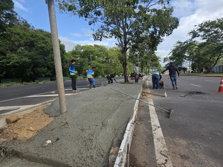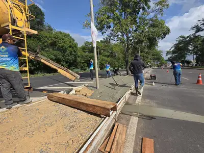 A última fase da execução inclui a sarjeta de concreto moldada in loco, consolidando o sistema de drenagem e finalizando o conjunto de melhorias no local. Posteriormente, as frentes de trabalho darão início à pavimentação do passeio, com a construção da calçada e da ciclovia em toda a extensão dá área promovendo mais segurança e mobilidade para pedestres e ciclistas.