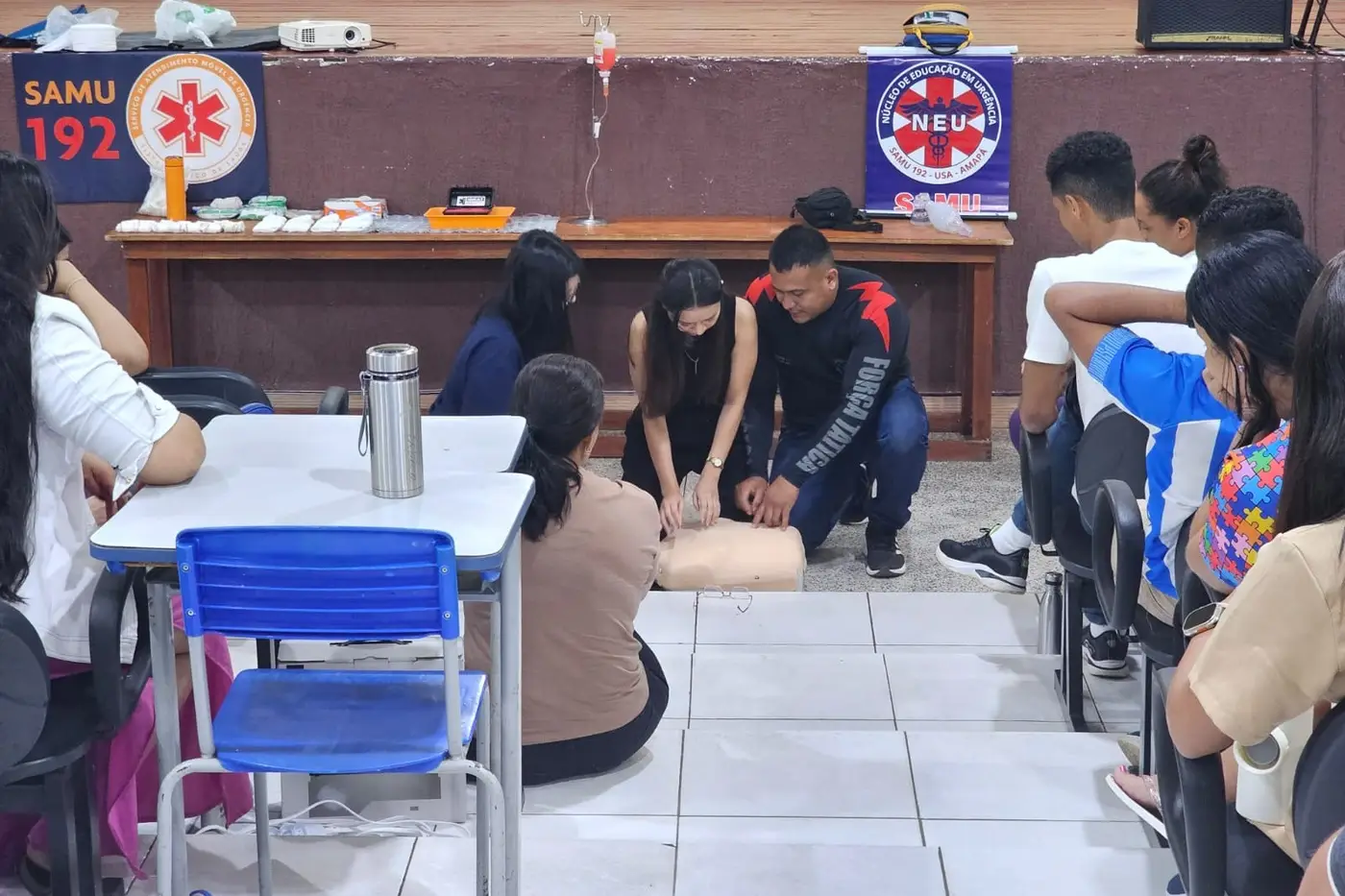 Cuidadores convocados na quarta chamada do concurso público da educação estadual participam de uma formação em primeiros socorros promovida pelo Governo do Amapá. A atividade faz parte do curso de qualificação obrigatório para ingresso na rede pública de ensino. A capacitação iniciou na quarta-feira, 28, e segue até esta quinta-feira, 29, com 92 profissionais divididos em duas turmas, preparando os servidores para o início das atividades nas escolas na próxima segunda-feira, 2 de fevereiro.
