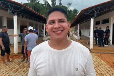 "É uma obra muito importante porque é uma escola gigante: doze salas, refeitório, quadra coberta, biblioteca — tudo o que é necessário para uma unidade de ensino. Estamos aqui em Vitória do Jari, mostrando mais uma entrega em parceria com a prefeitura", destacou o governador Clécio Luís.