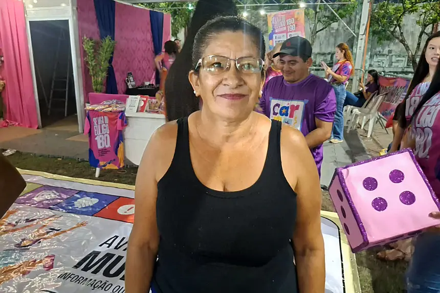 O formato chamou a atenção de quem aproveitava a festa. A autônoma Alcimira dos Santos, de 57 anos, participou das dinâmicas junto com sua vizinha e fez questão de registrar o momento.