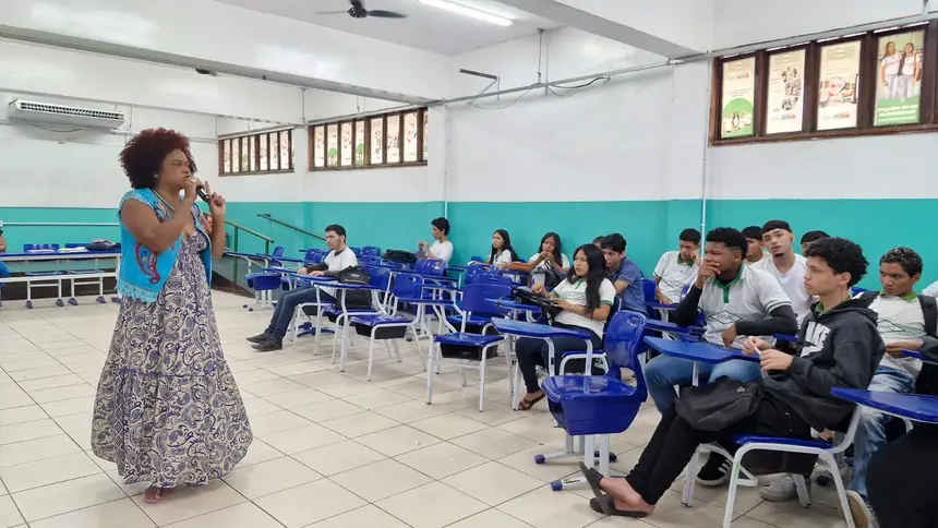 Na quinta-feira, 5, alunos da Escola Estadual Gabriel de Almeida Café, em Macapá, participaram da programação realizada no auditório da unidade. A atividade, voltada a estudantes do ensino médio, gerou momentos de diálogo, reflexão e troca de experiências sobre os desafios enfrentados pelas mulheres na sociedade.