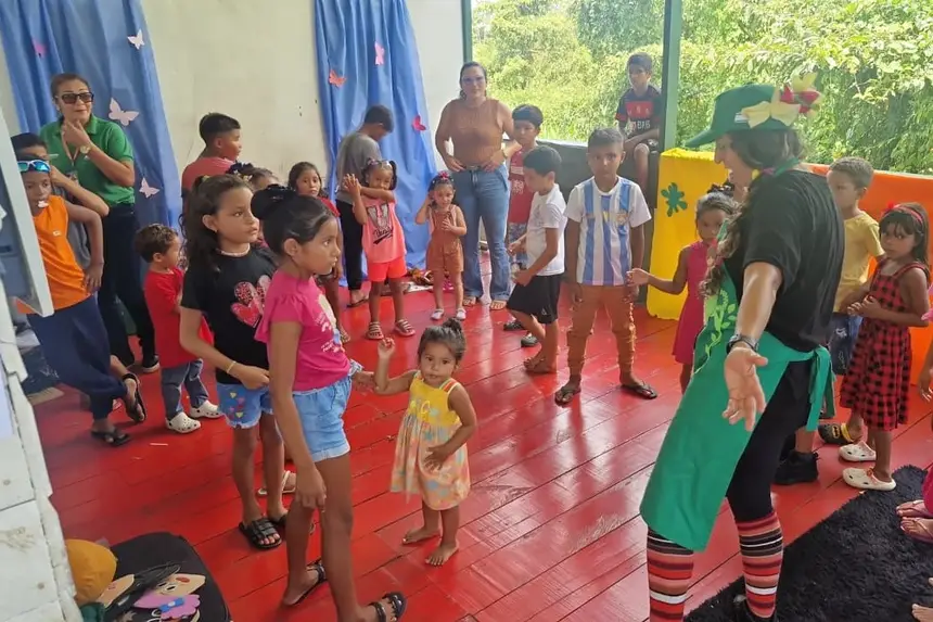 Iniciativa itinerante une serviços de cidadania com atividades lúdicas e contação de histórias às famílias ribeirinhas