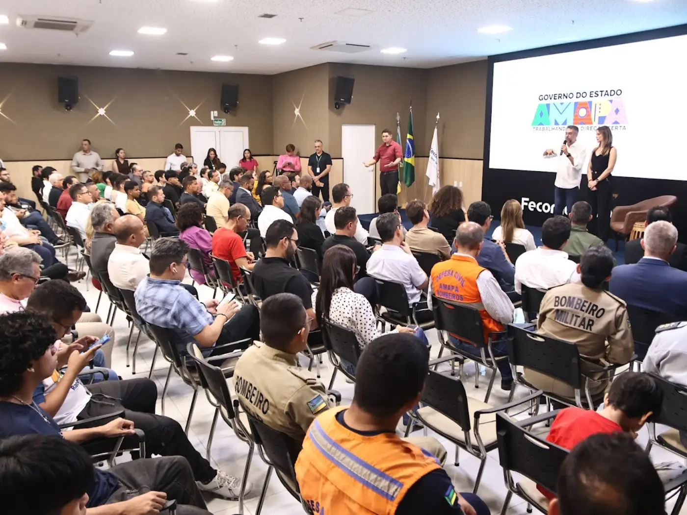 Homens de diversas esferas — política, religiosa, econômica e social —, além de autoridades e membros da sociedade civil, lotaram o auditório da Federação do Comércio (Fecomércio), nesta segunda-feira, 6, para o evento “Eles por Elas”. A iniciativa é uma parceria do Governo do Amapá com o Instituto Mapear.