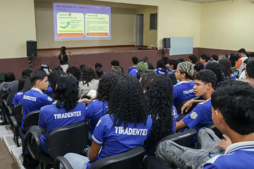 Com o objetivo de sanar dúvidas e assegurar que estudantes não percam prazos importantes, o Governo do Amapá iniciou, nesta segunda-feira, 13, uma ação itinerante para orientar sobre o Programa Pé-de-Meia e o Exame Nacional do Ensino Médio (Enem) 2026. A primeira unidade a receber a programação foi a Escola Estadual Tiradentes, em Macapá.