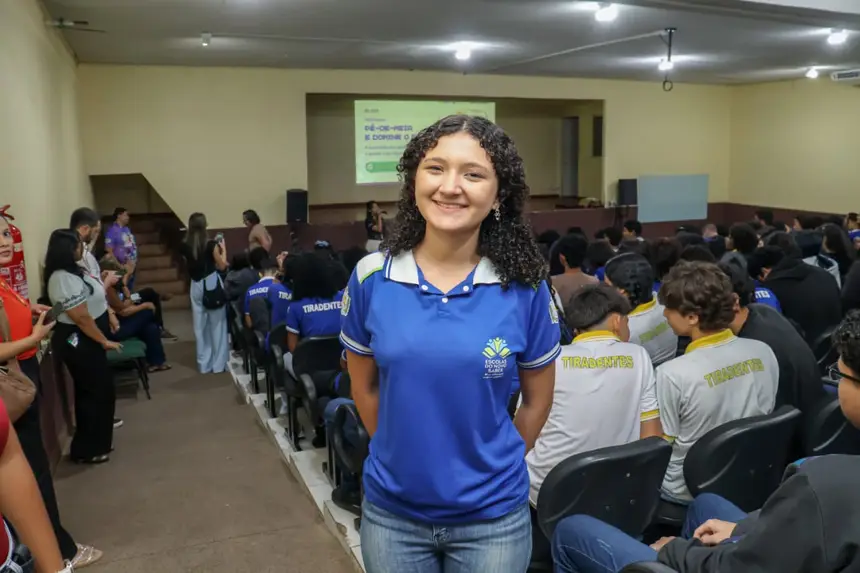 A estudante Jamile Santos, de 16 anos, está no 2º ano do ensino médio. Ela relata que aprendeu bastante sobre o Pé-de-Meia e o Enem e que também passou a conhecer a Central do Enem, uma proposta do Governo do Amapá que oferece aulas no contraturno para a preparação do exame.