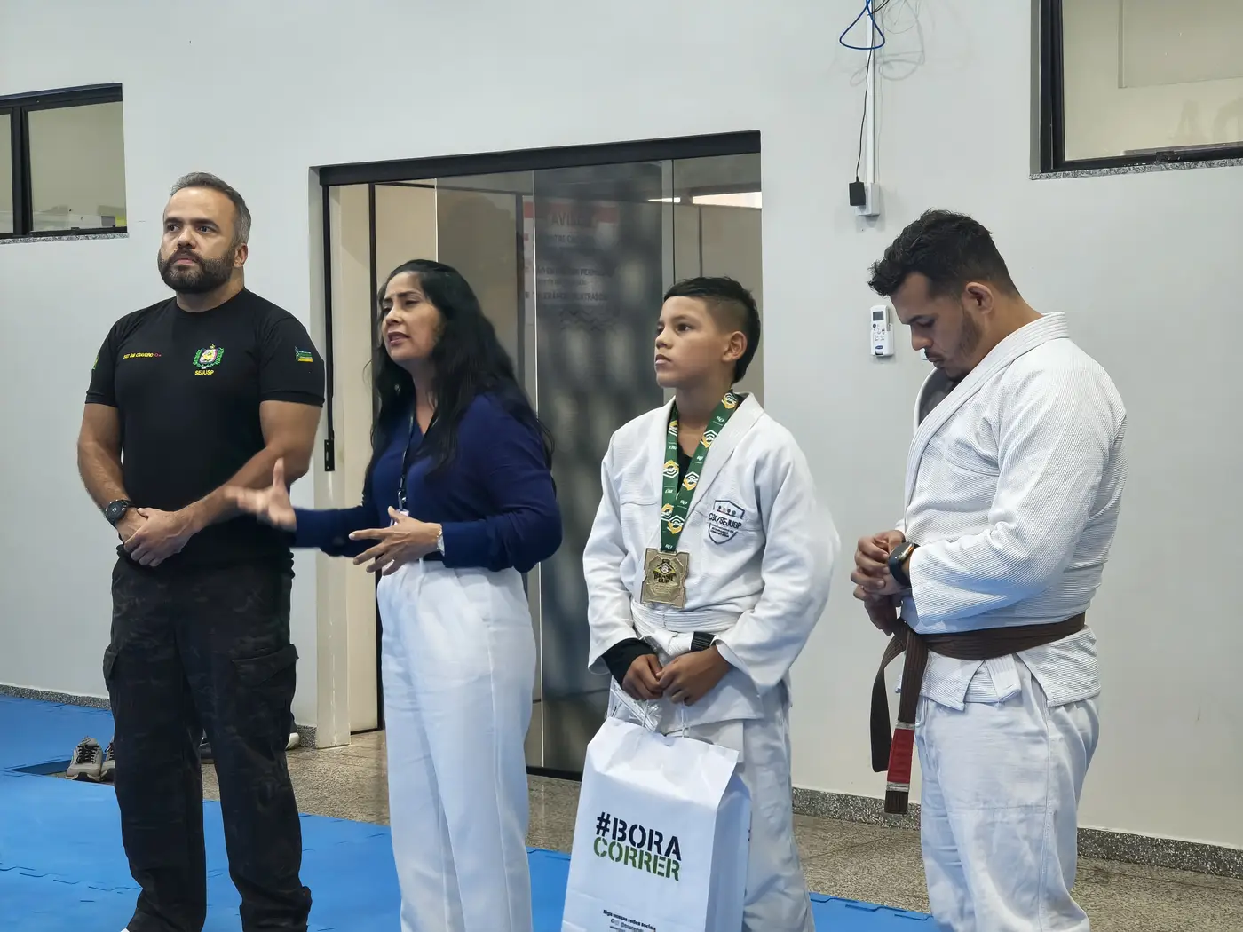 Medalhista, Edicleuson Senna, de 12 anos, ganhou um presente conjunto da Sejusp e Tjap como incentivo pela conquista