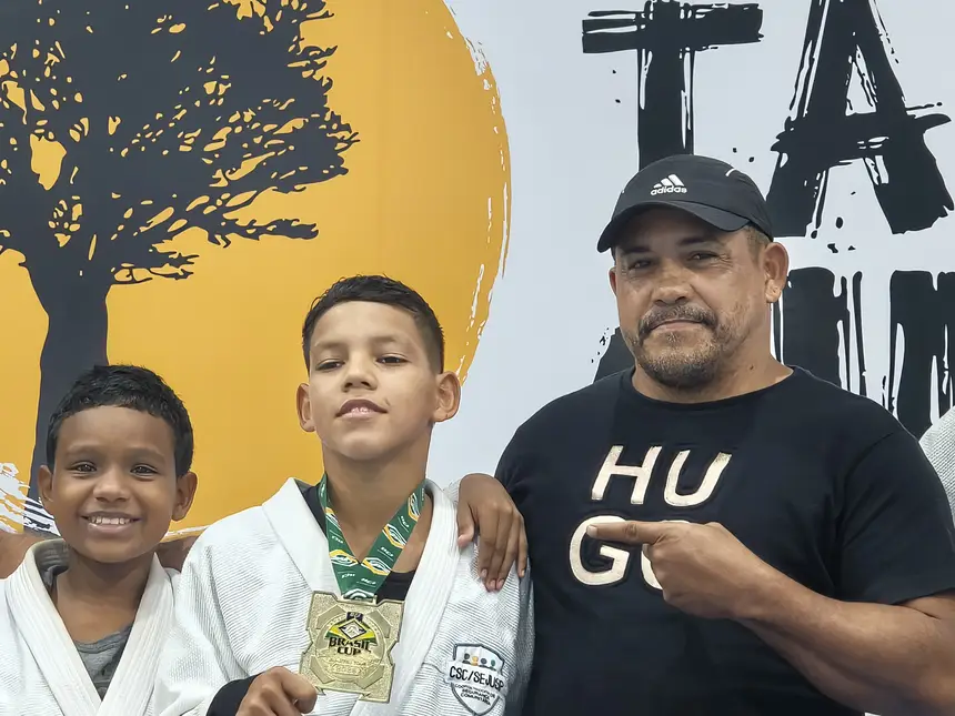 “Eu estava filmando tudo, vendo ele fazer força lá embaixo. O coração estava saindo pela boca! De repente, ele deu uma reviravolta, encaixou uma chave de braço e finalizou. Foi uma alegria imensa ver meu filho campeão em um torneio nacional. Sou grato por ter um molecão desse, guerreiro e obediente”, relatou o pai.