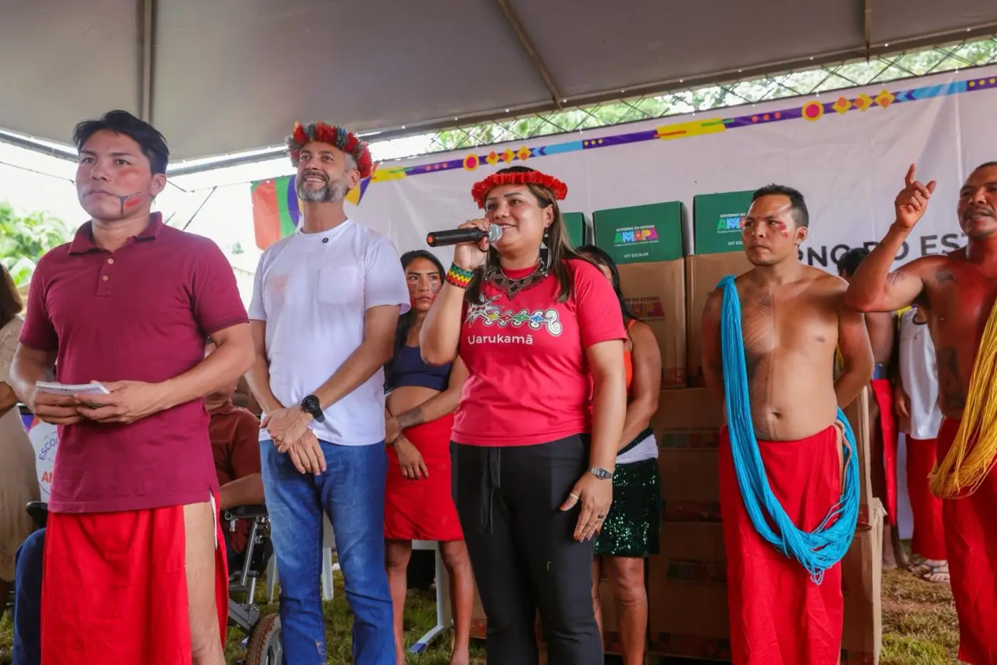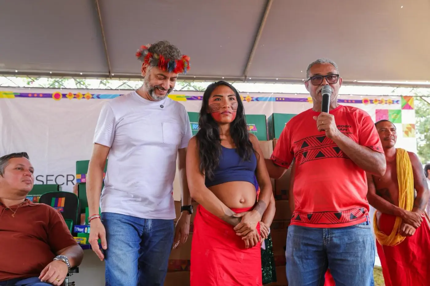 O momento também marcou a posse da nova titular da Secretaria Extraordinária dos Povos Indígenas (Sepi), Janina Forte, e contou com a presença do deputado federal Paulo Lemos e do prefeito de Pedra Branca do Amapari, Marcelo Pantoja, entre outras autoridades.