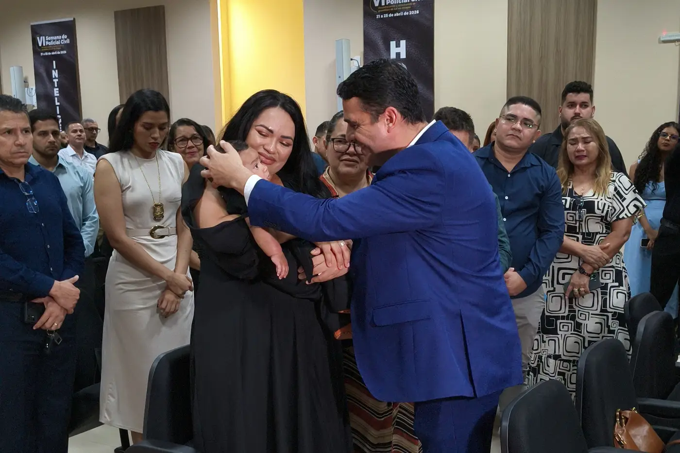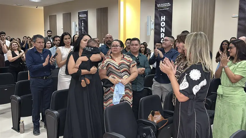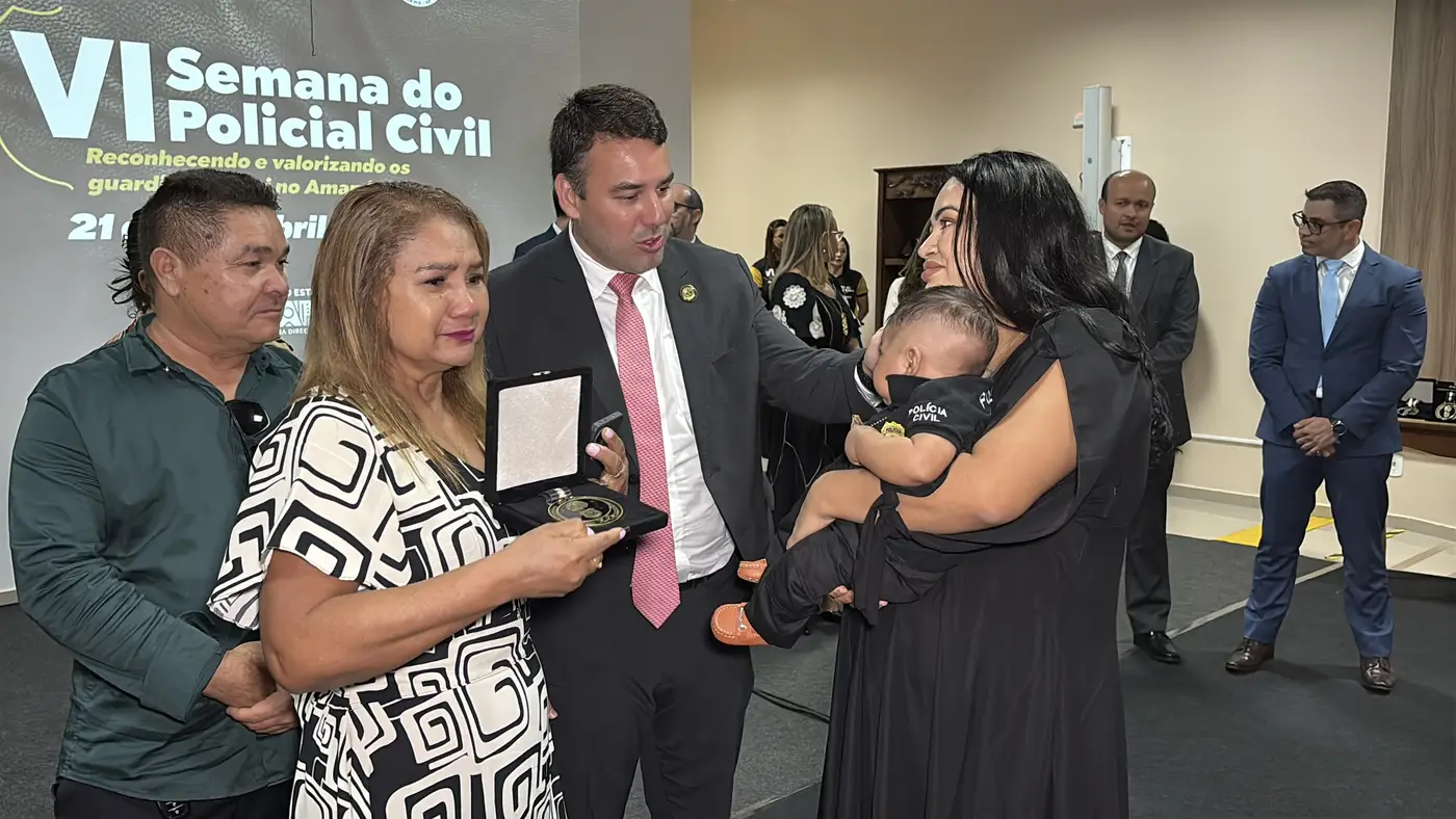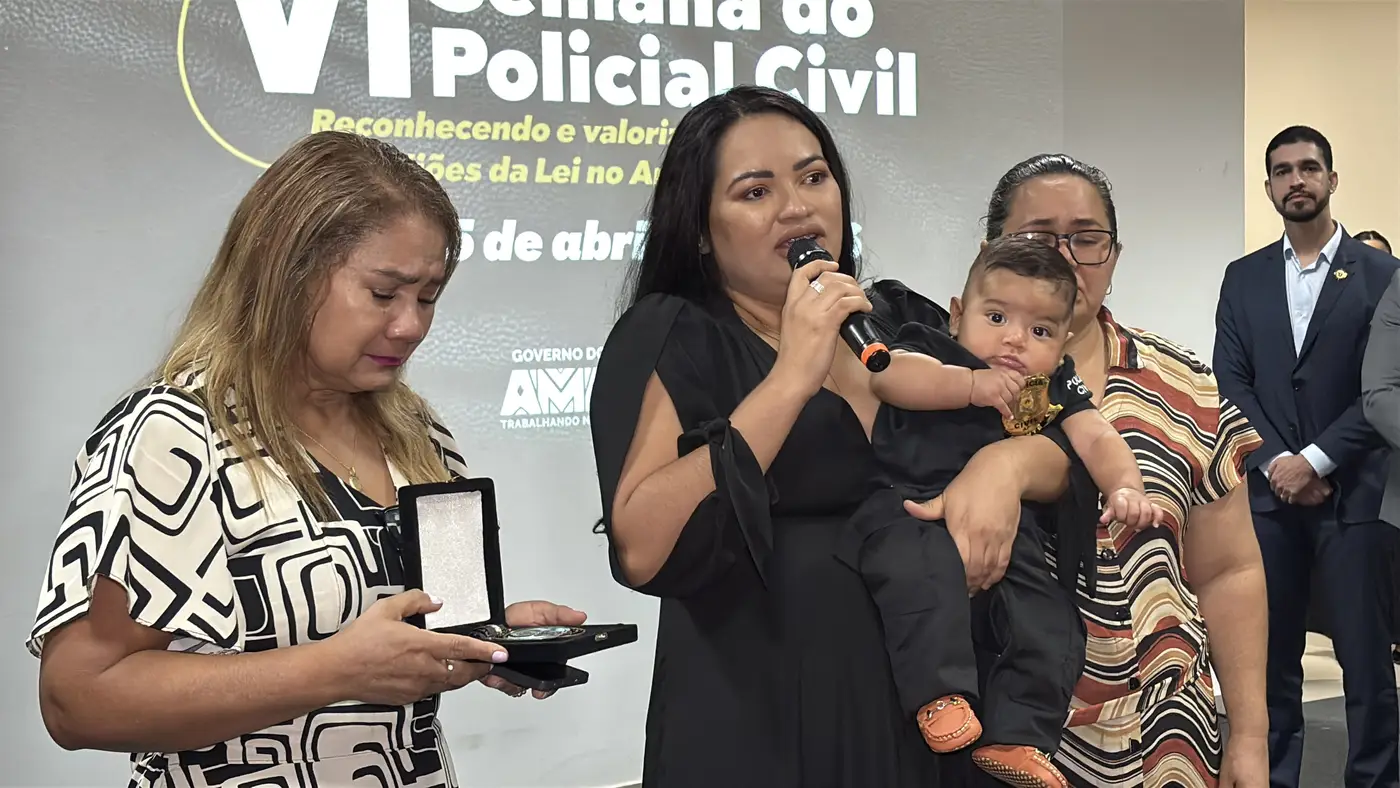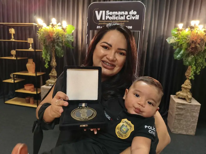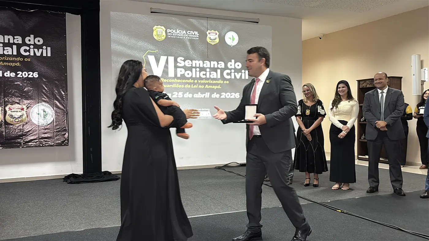 No colo de Ana Maria, o pequeno Mayson Emanuel, de apenas três meses de idade, é a imagem da vida que floresceu em meio à saudade. Durante a abertura oficial da VI Semana do Policial Civil, na última quarta-feira, 22, familiares do policial Mayson Viana de Freitas, morto aos 38 anos em 2025, receberam uma homenagem póstuma em celebração à atuação do agente na Segurança Pública do Amapá.